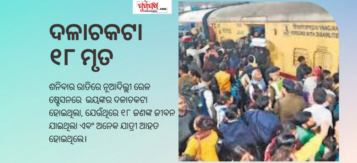 NDLS Stampade: ନୂଆଦିଲ୍ଲୀ ରେଳ ଷ୍ଟେସନରେ ଶନିବାର ରାତିରେ ହୋଇଥିବା ଦଳାଚକଟାରେ ୧୮ ଜଣଙ୍କ ମୃତ୍ୟୁ ଘଟିଛି। ୧୪ ଓ ୧୫ ନମ୍ବର ପ୍ଲାଟଫର୍ମ ମଝିରେ ଥିବା ସିଡି ଉପରେ ଏହି ଘଟଣା ଘଟିଛି। ଗୋଟିଏ ଗୋଡ଼ ଖସିଯିବାରୁ ବିଶୃଙ୍ଖଳା ସୃଷ୍ଟି ହୋଇଥିଲା, ଯାହା ଫଳରେ ଶୋକାକୁଳ ପରିବେଶ ସୃଷ୍ଟି ହୋଇଥିଲା। ଏହି ଘଟଣା ପରେ ରେଳ ପ୍ରଶାସନ ଓ ଯାତ୍ରୀଙ୍କ ମଧ୍ୟରେ ସଂଖ୍ୟାକୁ ନେଇ ସୃଷ୍ଟି ହୋଇଥିବା ଦ୍ୱନ୍ଦ୍ୱକୁ ନେଇ ଅନେକ ପ୍ରଶ୍ନ ଉଠିଛି । … Continue reading ୧୨-୧୪ ଚକ୍କରରେ ଚାଲିଗଲା ୧୮ ଜୀବନ, ଜାଣନ୍ତୁ ନୂଆଦିଲ୍ଲୀ ରେଳ ଷ୍ଟେସନରେ କେମିତି ହେଲା ନମ୍ବରର କନଫ୍ୟୁଜନ୍