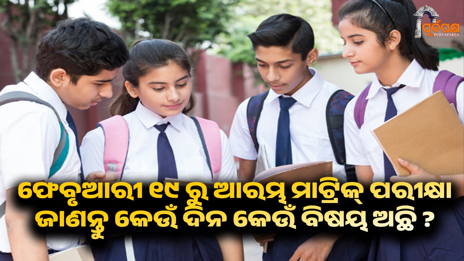ମାଧ୍ୟମିକ ଶିକ୍ଷା ବୋର୍ଡ (BSE) ଓଡ଼ିଶା ଶୁକ୍ରବାର ଦିନ ବାର୍ଷିକ ହାଇସ୍କୁଲ ସାର୍ଟିଫିକେଟ୍ (HSC) ପରୀକ୍ଷା ୨୦୨୬ ପାଇଁ ବିସ୍ତୃତ ସମୟସାରଣୀ ପ୍ରକାଶ କରିଛି। ରେଗୁଲାର ଏବଂ ଏକ୍ସ-ରେଗୁଲାର ଛାତ୍ରଛାତ୍ରୀଙ୍କ ପାଇଁ ଦଶମ ଶ୍ରେଣୀ ମାଟ୍ରିକ୍ ପରୀକ୍ଷା ୧୯ ଫେବୃଆରୀ ୨୦୨୬ରୁ ଆରମ୍ଭ ହେବ ଏବଂ ୨ ମାର୍ଚ୍ଚ ୨୦୨୬ ପର୍ଯ୍ୟନ୍ତ ଚାଲିବ।