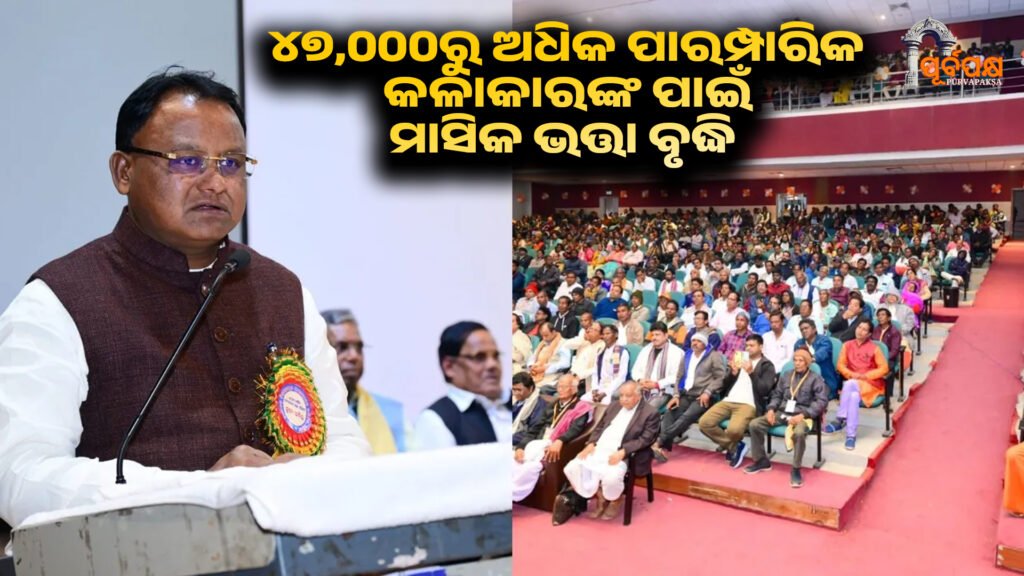 ରବିବାର ଦିନ ଓଡ଼ିଶା ସରକାର ମୁଖ୍ୟମନ୍ତ୍ରୀ କଳାକାର ସହାୟତା ଯୋଜନା ଅଧୀନରେ ପାରମ୍ପରିକ କଳାକାରମାନଙ୍କୁ ପ୍ରଦାନ କରାଯାଉଥିବା ମାସିକ ଭତ୍ତା ବୃଦ୍ଧି ଘୋଷଣା କରିଛନ୍ତି, ଯାହା ରାଜ୍ୟର ୪୭,୭୦୪ ଜଣ କଳାକାରଙ୍କୁ ଲାଭ ଦେବ। କେନ୍ଦୁଝର ପାର୍କ ଲେନରେ ୪୮ତମ ରାଜ୍ୟସ୍ତରୀୟ ପାଲା ସମ୍ମିଳନୀକୁ ସମ୍ବୋଧିତ କରି ମୁଖ୍ୟମନ୍ତ୍ରୀ ମୋହନ ଚରଣ ମାଝୀ ଏହି ଘୋଷଣା କରିଛନ୍ତି।