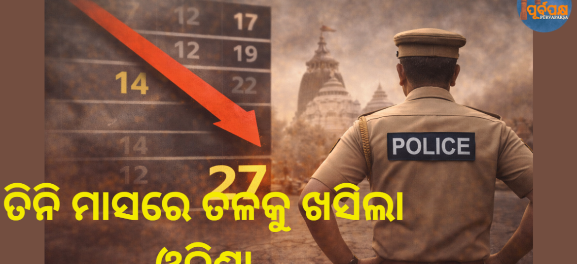 ନୂତନ ଅପରାଧ ଆଇନ କାର୍ଯ୍ୟକାରୀ କରିବା ପାଇଁ ଜାତୀୟ ସ୍ତରରେ ଓଡ଼ିଶା ରାଙ୍କିଂରେ ଏକ ବଡ଼ ହ୍ରାସ ପାଇଛି, ଯାହା ନଭେମ୍ବର ୨୦୨୫ରେ ୧୪ତମ ସ୍ଥାନରୁ ୨୦୨୬ଫେବୃଆରୀରେ ୨୭ତମ ସ୍ଥାନକୁ ଖସି ଆସିଛି। ମାତ୍ର ତିନି ମାସ ମଧ୍ୟରେ ଏହି ହ୍ରାସ ରାଜ୍ୟ ପୋଲିସର ପ୍ରସ୍ତୁତି ଏବଂ କାର୍ଯ୍ୟଦକ୍ଷତା ଉପରେ ଚିନ୍ତା ସୃଷ୍ଟି କରିଛି। କେନ୍ଦ୍ର ସ୍ୱରାଷ୍ଟ୍ର ମନ୍ତ୍ରଣାଳୟ ଦ୍ୱାରା କରାଯାଇଥିବା ମୂଲ୍ୟାଙ୍କନ ଚାରୋଟି ପାରାମିଟରରେ କାର୍ଯ୍ୟଦକ୍ଷତା ମାପ କରିଥାଏ, ଯେପରିକି ପ୍ରଶାସନିକ ସଂସ୍କାର (୨୦%), କାର୍ଯ୍ୟକ୍ଷମ … Continue reading ତିନି ମାସରେ ତଳକୁ ଖସିଲା ଓଡ଼ିଶା || Odisha sees sharp decline in three months