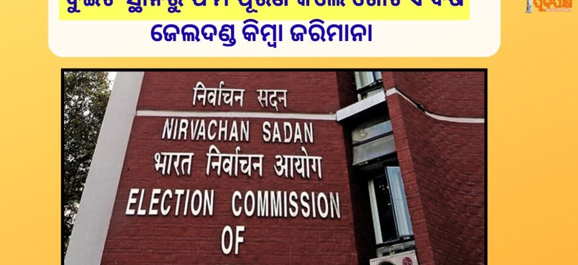 ଉତ୍ତର ପ୍ରଦେଶ ସମେତ ନଅଟି ରାଜ୍ୟ ଏବଂ ତିନୋଟି କେନ୍ଦ୍ରଶାସିତ ଅଞ୍ଚଳରେ ଭୋଟର ତାଲିକାର ସ୍ୱତନ୍ତ୍ର ସଂଘନ ସଂଶୋଧନ (SIR) ପ୍ରକ୍ରିୟା ଚାଲିଛି । ଉତ୍ତର ପ୍ରଦେଶରେ ଏହି ପ୍ରକ୍ରିୟା ନଭେମ୍ବର ୪ ତାରିଖରେ ଆରମ୍ଭ ହୋଇଥିଲା ଏବଂ ଏହା ସମ୍ପୂର୍ଣ୍ଣ ଏକ ମାସ ପର୍ଯ୍ୟନ୍ତ ଚାଲିବ, ଯାହାର ଶେଷ ତାରିଖ ଡିସେମ୍ବର ୪ ତାରିଖ। ରାଜ୍ୟର ନିଜ ନିଜ ଅଞ୍ଚଳରେ SIR ପ୍ରକ୍ରିୟା ସୁଗମ ଭାବରେ ପରିଚାଳନା କରିବା ପାଇଁ ପୂର୍ବରୁ ଅନେକ ଅଧିକାରୀଙ୍କୁ ନିଯୁକ୍ତ … Continue reading One year jail or fine for filling form from two places ।। ଦୁଇଟି ସ୍ଥାନରୁ ଫର୍ମ ପୂରଣ କଲେ ଗୋଟିଏ ବର୍ଷ ଜେଲଦଣ୍ଡ କିମ୍ବା ଜରିମାନା