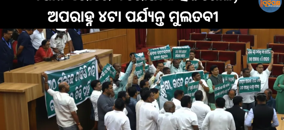 ବୁଧବାର ଦିନ ଓଡ଼ିଶା ବିଧାନସଭାର ବଜେଟ ଅଧିବେଶନର ଦ୍ୱିତୀୟ ଦିନରେ ପ୍ରବଳ ବାଧା ସୃଷ୍ଟି ହୋଇଥିଲା, ଯାହା ଫଳରେ ବିରୋଧୀ ଦଳ ସଦସ୍ୟମାନେ ଧାନ ସଂଗ୍ରହରେ ଅନିୟମିତତା ଅଭିଯୋଗ ନେଇ ପ୍ରତିବାଦ କରିବାରୁ ଗୃହକୁ ଅପରାହ୍ନ ୪ଟା ପର୍ଯ୍ୟନ୍ତ ମୁଲତବୀ ରଖିବାକୁ ପଡିଥିଲା। ବିଧାନସଭା ଆରମ୍ଭ ହେବା ମାତ୍ରେ, ବିଜୁ ଜନତା ଦଳ (ବିଜେଡି) ଏବଂ କଂଗ୍ରେସ ସଦସ୍ୟମାନେ ରାଜ୍ୟବ୍ୟାପୀ ଧାନ ମଣ୍ଡିଗୁଡ଼ିକରେ ବ୍ୟାପକ ପରିଚାଳନା ତ୍ରୁଟି ଅଭିଯୋଗ କରି ସରକାରଙ୍କ ବିରୁଦ୍ଧରେ ସ୍ଲୋଗାନ ଦେଇଥିଲେ। ପ୍ରତିବାଦକାରୀ … Continue reading ବିଧାନସଭାରେ ବିରୋଧୀଙ୍କ ହଟ୍ଟଗୋଳ, ଅପରାହ୍ନ ୪ଟା ପର୍ଯ୍ୟନ୍ତ ମୁଲତବୀ || Opposition creates ruckus in Assembly, adjourned till 4 pm