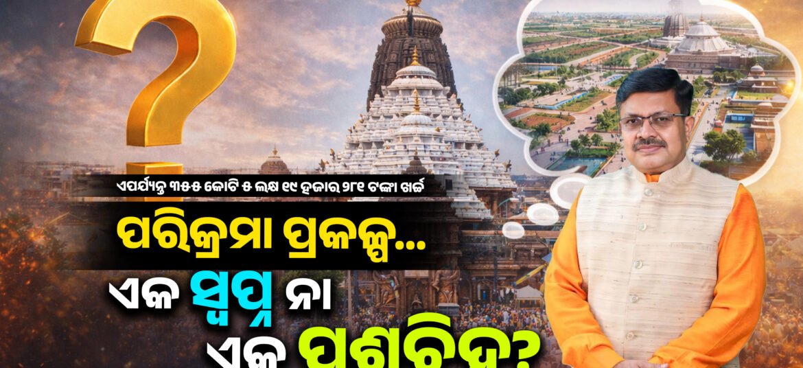 ପୁରୀର ପବିତ୍ର ଧାମ, ଶ୍ରୀ ଜଗନ୍ନାଥ ମନ୍ଦିର… ଯେଉଁଠାରେ ଲକ୍ଷେ ଲକ୍ଷେ ଭକ୍ତ ଆସନ୍ତି ମହାପ୍ରଭୁଙ୍କ ଦର୍ଶନ ପାଇଁ। କିନ୍ତୁ ପ୍ରଶ୍ନ ଉଠୁଛି—ମହାପ୍ରଭୁଙ୍କ ନାଁରେ ହେଉଥିବା ପରିକ୍ରମା ପ୍ରକଳ୍ପ ଭକ୍ତଙ୍କୁ କେତେ ଶାନ୍ତି ଦେଇପାରିଲା? ଗତ ସରକାରଙ୍କ ବଡ଼ ସ୍ୱପ୍ନ—ପରିକ୍ରମା ପ୍ରକଳ୍ପ। ଉଦ୍ଦେଶ୍ୟ ଥିଲା ମନ୍ଦିର ଚାରିପାଖରେ ସୁବିଧା ବୃଦ୍ଧି, ଭକ୍ତଙ୍କ ପାଇଁ ସୁବ୍ୟବସ୍ଥିତ ରାସ୍ତା, ସୁରକ୍ଷା, ପରିଚ୍ଛନ୍ନତା, ଏବଂ ଧାର୍ମିକ ପରିବେଶକୁ ଅଧିକ ଉନ୍ନତ କରିବା। କିନ୍ତୁ ଏହି ସ୍ୱପ୍ନ ପୂରଣରେ ଖର୍ଚ୍ଚ ହେଉଛି ପାଣି … Continue reading ପରିକ୍ରମା ପ୍ରକଳ୍ପ… ଏକ ସ୍ୱପ୍ନ କି ଏକ ପ୍ରଶ୍ନଚିହ୍ନ? || Parikrama Project… A Dream or a Question Mark?