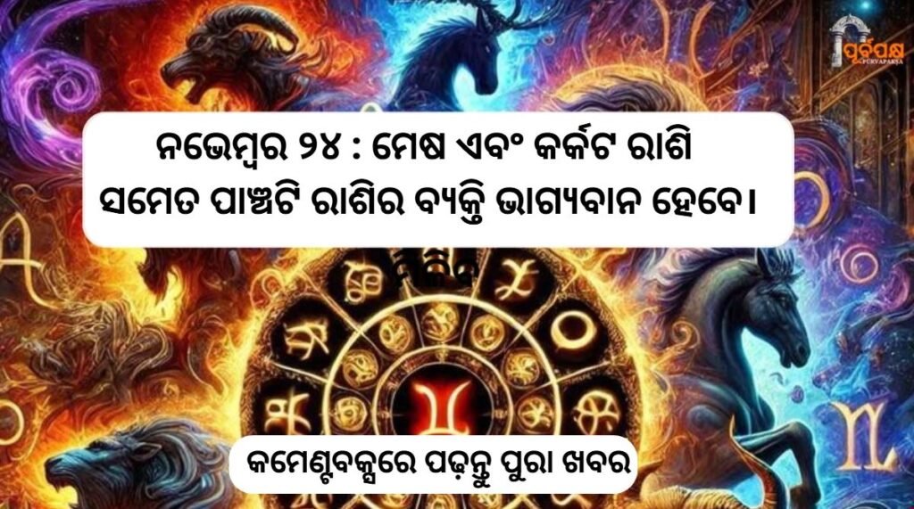 ନଭେମ୍ବର ୨୪ ତାରିଖ ସୋମବାର , ତିଥି ହେଉଛି ବିନାୟକ ଚତୁର୍ଥୀ, ମାର୍ଗଶୀର ମାସର ଶୁକ୍ଳ ପକ୍ଷ । ତେଣୁ ଆଜି ଦେବତା ଭଗବାନ ଶିବ ଏବଂ ଭଗବାନ ଗଣେଶ ହେବେ। ଚନ୍ଦ୍ର ଧନୁ ରାଶିରେ ଗମନ କରିବେ ଏବଂ ଏଠାରେ ସୂର୍ଯ୍ୟ ଏବଂ ମଙ୍ଗଳ ଚନ୍ଦ୍ରରୁ ଦ୍ୱାଦଶ ଘରେ ଅବସ୍ଥାନ କରିବେ ଯାହା ଅନାପ ଯୋଗ ସୃଷ୍ଟି କରିବ। କାଲି ବିଛା ରାଶିରେ ସୂର୍ଯ୍ୟ ଏବଂ ମଙ୍ଗଳଙ୍କ ସଂଯୋଗ ମଧ୍ୟ ଆଦିତ୍ୟ ମଙ୍ଗଳ ଯୋଗ ସୃଷ୍ଟି କରିବ। ତେଣୁ ଆଦିତ୍ୟ ମଙ୍ଗଳ ଯୋଗ ଏବଂ ଭଗବାନ ଗଣେଶଙ୍କ ଆଶୀର୍ବାଦ ଯୋଗୁଁ ମେଷ, କର୍କଟ, କନ୍ୟା, ଧନୁ ଏବଂ କୁମ୍ଭ ରାଶି ପାଇଁ ବହୁତ ଶୁଭ ଏବଂ ଲାଭଦାୟକ ହେବ। ଭାଗ୍ୟ ସେମାନଙ୍କୁ ବିଭିନ୍ନ କ୍ଷେତ୍ରରେ ସଫଳତା ଆଣିବ।