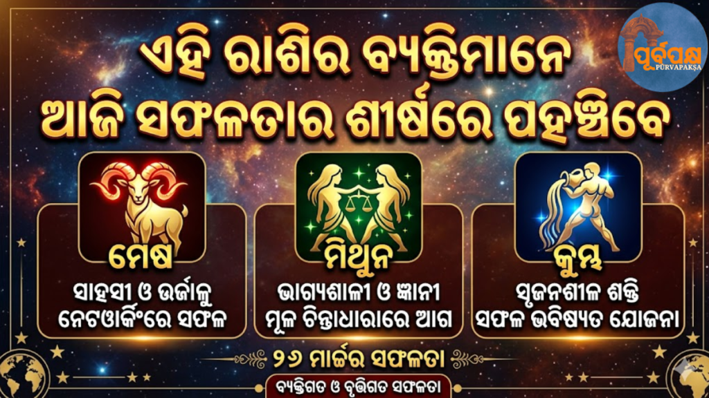 ୨୬ ମାର୍ଚ୍ଚ ସକାଳ ଆପଣଙ୍କ ବ୍ୟକ୍ତିତ୍ୱରେ ଏକ ନୂତନ ଉଜ୍ଜ୍ୱଳତା ଏବଂ ଗଭୀର ଆତ୍ମବିଶ୍ୱାସ ଆଣିଥାଏ। ମିଥୁନ ରାଶିରେ ଚନ୍ଦ୍ର ଏବଂ ବୃହସ୍ପତିଙ୍କ ଶୁଭ ସଂଯୋଗ ଆମକୁ କେବଳ ଚିନ୍ତନ କରିବା ଅପେକ୍ଷା ପ୍ରଭାବଶାଳୀ ଭାବରେ ଆମର ଚିନ୍ତାଧାରାକୁ ପ୍ରକାଶ କରିବାକୁ ପ୍ରେରଣା ଦିଏ। ଉଲ୍ଲେଖନୀୟ, ମେଷ ରାଶିରେ ଶୁକ୍ରଙ୍କ ପ୍ରବେଶ ଆପଣଙ୍କ ବ୍ୟକ୍ତିଗତ ଆକର୍ଷଣକୁ ବୃଦ୍ଧି କରିବ, ଯାହା ଦ୍ୱାରା ସାମାଜିକ ଏବଂ ବୃତ୍ତିଗତ ଉଭୟ କ୍ଷେତ୍ରରେ ଆପଣଙ୍କ ଗ୍ରହଣୀୟତା ବୃଦ୍ଧି ପାଇବ।