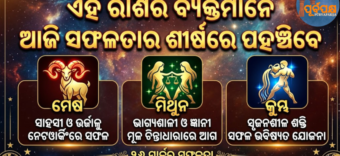 ୨୬ ମାର୍ଚ୍ଚ ସକାଳ ଆପଣଙ୍କ ବ୍ୟକ୍ତିତ୍ୱରେ ଏକ ନୂତନ ଉଜ୍ଜ୍ୱଳତା ଏବଂ ଗଭୀର ଆତ୍ମବିଶ୍ୱାସ ଆଣିଥାଏ। ମିଥୁନ ରାଶିରେ ଚନ୍ଦ୍ର ଏବଂ ବୃହସ୍ପତିଙ୍କ ଶୁଭ ସଂଯୋଗ ଆମକୁ କେବଳ ଚିନ୍ତନ କରିବା ଅପେକ୍ଷା ପ୍ରଭାବଶାଳୀ ଭାବରେ ଆମର ଚିନ୍ତାଧାରାକୁ ପ୍ରକାଶ କରିବାକୁ ପ୍ରେରଣା ଦିଏ। ଉଲ୍ଲେଖନୀୟ, ମେଷ ରାଶିରେ ଶୁକ୍ରଙ୍କ ପ୍ରବେଶ ଆପଣଙ୍କ ବ୍ୟକ୍ତିଗତ ଆକର୍ଷଣକୁ ବୃଦ୍ଧି କରିବ, ଯାହା ଦ୍ୱାରା ସାମାଜିକ ଏବଂ ବୃତ୍ତିଗତ ଉଭୟ କ୍ଷେତ୍ରରେ ଆପଣଙ୍କ ଗ୍ରହଣୀୟତା ବୃଦ୍ଧି ପାଇବ। ମେଷ ଆପଣ … Continue reading ଏହି ରାଶିର ବ୍ୟକ୍ତିମାନେ ଆଜି ସଫଳତାର ଶୀର୍ଷରେ ପହଞ୍ଚିବେ || People of this zodiac sign will reach the pinnacle of success today.