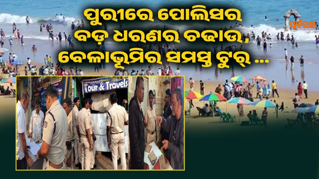 ପର୍ଯ୍ୟଟନ ନଗରୀ ପୁରୀରେ ପୋଲିସ ପକ୍ଷରୁ ଏକ ବଡ଼ ଧରଣର ଚଢ଼ଉ କରାଯାଇଛି । ବିଶେଷକରି ବେଳାଭୂମି ଅଞ୍ଚଳରେ ଚାଲୁଥିବା ସମସ୍ତ ଟୁର ଓ ଟ୍ରାଭେଲ କାର୍ଯ୍ୟାଳୟ ଉପରେ ବିଚ୍ ପୋଲିସ ଦ୍ୱାରା ଆକସ୍ମିକ ଚଢ଼ଉ କରାଯାଇଛି । ପର୍ଯ୍ୟଟକଙ୍କୁ ଠକେଇ ଅବୈଧ ବ୍ୟବସାୟ ଏବଂ ସରକାରୀ ନିୟମ ଉଲ୍ଲଂଘନ ଅଭିଯୋଗ ବଢ଼ିବା ପରେ ପୋଲିସ ଏହି କଡ଼ା ପଦକ୍ଷେପ ନେଇଛି ।