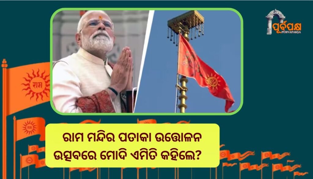 ରାମ ମନ୍ଦିର ପତାକା ଉତ୍ତୋଳନ ଉତ୍ସବରେ ଯୋଗ ଦେଇ ପ୍ରଧାନମନ୍ତ୍ରୀ ମୋଦୀ କହିଥିଲେ, “ମୁଁ ଏହି ଗୁରୁତ୍ୱପୂର୍ଣ୍ଣ ମୁହୂର୍ତ୍ତରେ ଲକ୍ଷ ଲକ୍ଷ ରାମ ଭକ୍ତଙ୍କୁ ଅଭିନନ୍ଦନ ଜଣାଉଛି। ମୁଁ ରାମ ମନ୍ଦିର ସହିତ ଜଡ଼ିତ ପ୍ରତ୍ୟେକ ସ୍ଥପତି ଏବଂ ଯୋଜନାକାରୀଙ୍କୁ ଅଭିନନ୍ଦନ ଜଣାଉଛି। ମୁଁ ସମସ୍ତ ଦାନଶୀଳ ବ୍ୟକ୍ତିଙ୍କୁ ମୋର କୃତଜ୍ଞତା ଜଣାଉଛି। ଏହି ଅଯୋଧ୍ୟା ବିଶ୍ୱକୁ ଦେଖାଇଲା ଯେ କିପରି ଜଣେ ବ୍ୟକ୍ତି ତାଙ୍କ ମୂଲ୍ୟବୋଧ ମାଧ୍ୟମରେ ପୁରୁଷମାନଙ୍କ ମଧ୍ୟରେ ଶ୍ରେଷ୍ଠ ହୋଇଯାଏ। ଯେତେବେଳେ ପ୍ରଭୁ ରାମ ନିର୍ବାସନକୁ ଗଲେ ସେ ରାଜକୁମାର ରାମ ଥିଲେ, କିନ୍ତୁ ଯେତେବେଳେ ସେ ଫେରିଲେ, ସେ ପୁରୁଷମାନଙ୍କ ମଧ୍ୟରେ ଶ୍ରେଷ୍ଠ ହୋଇଗଲେ। ଏଥିରେ ଅନେକ ଲୋକ ଅବଦାନ ଦେଇଥିଲେ।”