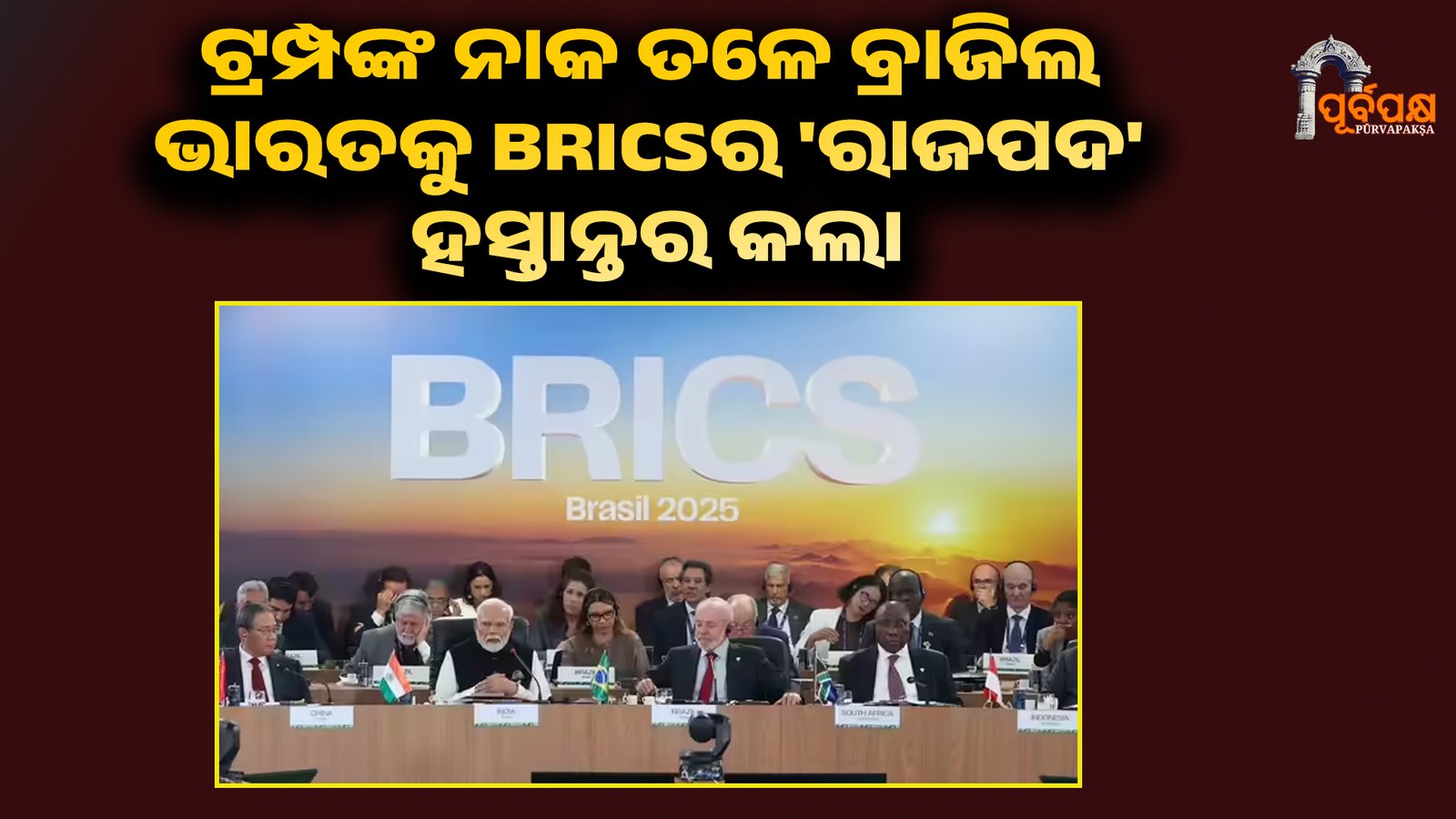 ଆମେରିକା ରାଷ୍ଟ୍ରପତି ଡୋନାଲ୍ଡ ଟ୍ରମ୍ପଙ୍କ କଠୋର ଆଭିମୁଖ୍ୟ ଏବଂ ତାଙ୍କ ନିଷ୍ପତ୍ତି ଯୋଗୁଁ ଅନେକ ଦେଶ ଏବଂ ସଂଗଠନ ଉପରେ ବଢ଼ୁଥିବା ଚାପ ମଧ୍ୟରେ, BRICSର ଲଗାମ ଏବେ ଭାରତକୁ ଦିଆଯାଇଛି। BRICS ରାଷ୍ଟ୍ରପତି ପଦ ବ୍ରାଜିଲରୁ ଭାରତକୁ ହସ୍ତାନ୍ତର କେବଳ ଏକ ଆନୁଷ୍ଠାନିକ ପ୍ରକ୍ରିୟା ନଥିଲା ବରଂ ପ୍ରତୀକାତ୍ମକତାରେ ବୁଡ଼ି ରହିଥିଲା, ବିଶେଷକରି ଯେତେବେଳେ ଏକପାଖିଆ ଆମେରିକାର ନିଷ୍ପତ୍ତି ବିଶ୍ୱ କ୍ରମକୁ ଥରାଇ ଦେଉଛି। ୨୦୨୪ରେ ରୁଷରୁ ମିଳିଥିବା ଷ୍ଟିଲ୍ ହାତୁଡ଼ି ପରେ, ବ୍ରାଜିଲ ଭାରତକୁ ଆମାଜନ ବର୍ଷା ଜଙ୍ଗଲରୁ ପୁନଃଚକ୍ରିତ କାଠରୁ ତିଆରି ଏକ ହାତୁଡ଼ି ପ୍ରଦାନ କରିଥିଲା।