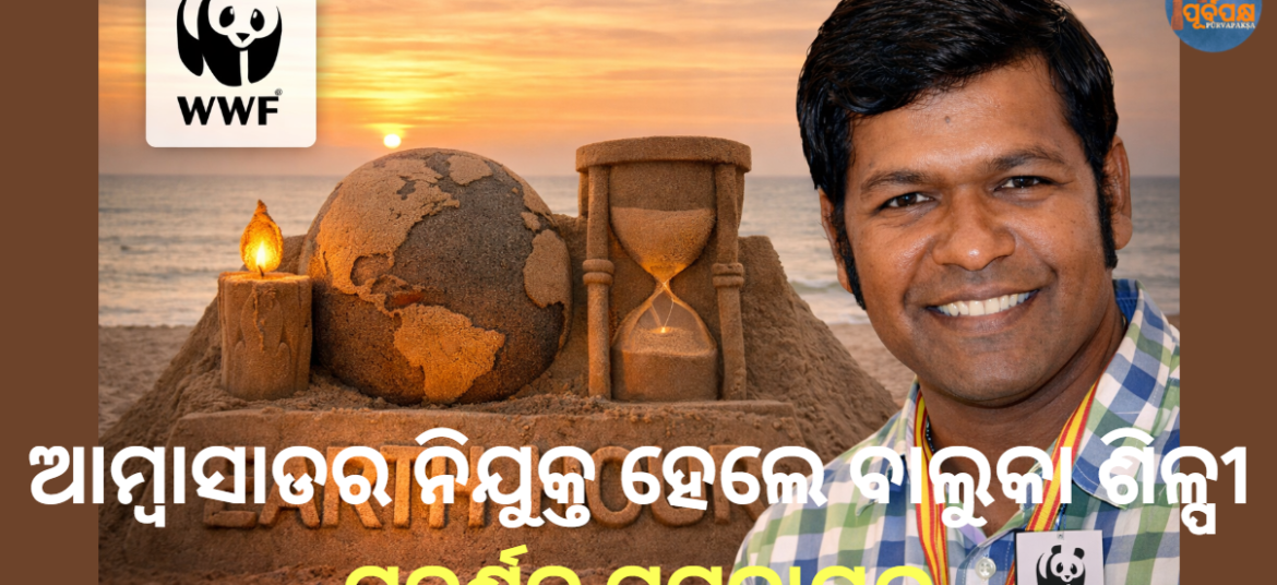 WWF-ଇଣ୍ଡିଆ ମାର୍ଚ୍ଚ ୨୮ ତାରିଖରେ ପାଳନ ହେବାକୁ ଥିବା ଆର୍ଥ ଆୱାର ୨୦୨୬ର ୨୦ତମ ବାର୍ଷିକୀ ଉପଲକ୍ଷେ ପ୍ରସିଦ୍ଧ ବାଲୁକା ଶିଳ୍ପୀ ସୁଦର୍ଶନ ପଟ୍ଟନାୟକଙ୍କୁ ଜଣେ ରାଷ୍ଟ୍ରଦୂତ ଭାବରେ ନିଯୁକ୍ତ କରିଛି। ଆର୍ଥ ଆୱାରର ଐତିହ୍ୟ ରାଷ୍ଟ୍ରଦୂତ ଭୂମିକା ଗ୍ରହଣ କରିଥିବା ପଟ୍ଟନାୟକ କହିଛନ୍ତି ଯେ ତାଙ୍କର କଳାକୃତି ସର୍ବଦା ଗ୍ରହ ସୁରକ୍ଷା ବିଷୟରେ ସଚେତନତା ପ୍ରସାର କରିବାର ଏକ ମାଧ୍ୟମ ହୋଇଛି। ସେ ଆହୁରି ମଧ୍ୟ କହିଛନ୍ତି ଯେ ସେ ଏହି କାର୍ଯ୍ୟକ୍ରମର ପୂର୍ବ ସନ୍ଧ୍ୟାରେ … Continue reading ଆମ୍ବାସାଡର ନିଯୁକ୍ତ ହେଲେ ବାଲୁକା ଶିଳ୍ପୀ ସୁଦର୍ଶନ ପଟ୍ଟନାୟକ || Sand sculptor Sudarsan Pattnaik appointed as ambassador