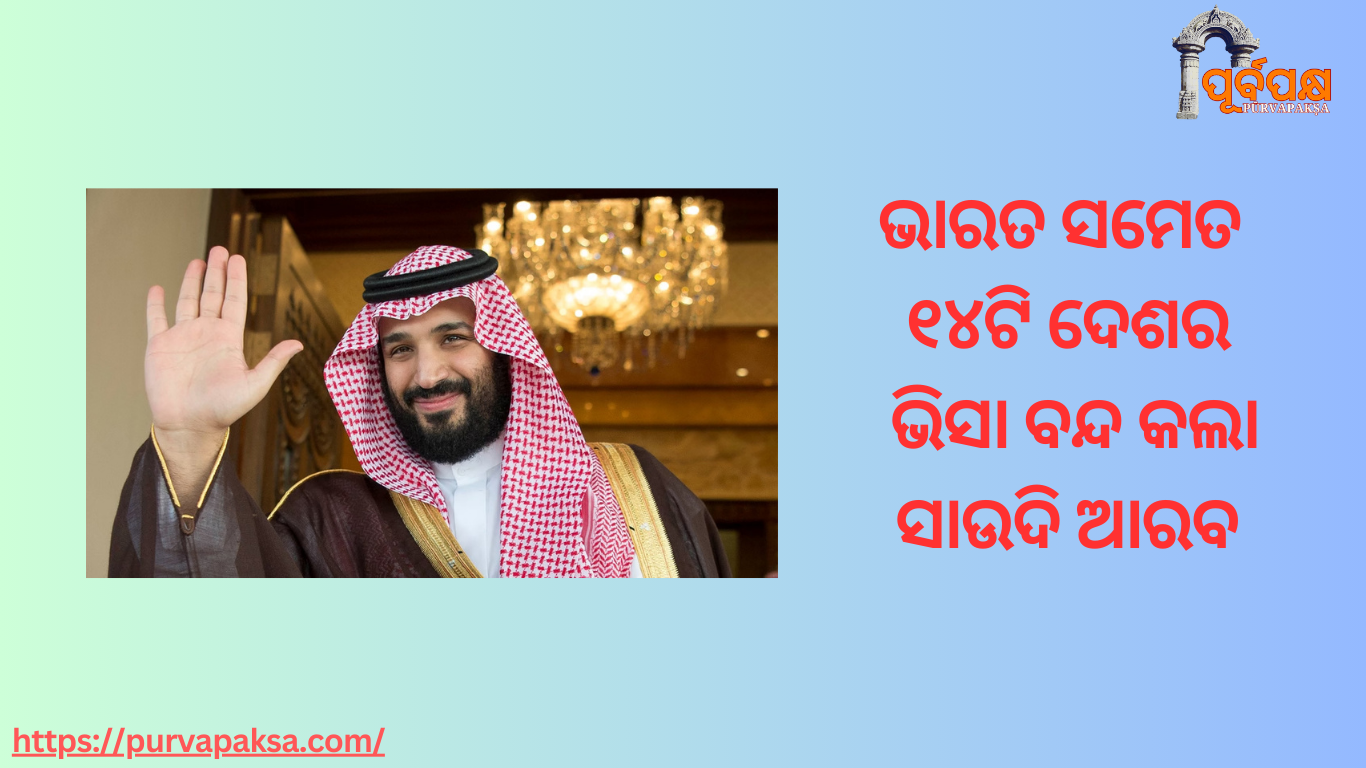 ସାଉଦି ଆରବ ଭାରତ, ପାକିସ୍ତାନ ଓ ବାଂଲାଦେଶ ସମେତ ୧୪ଟି ଦେଶର ଲୋକଙ୍କୁ କେତେକ ପ୍ରକାର ଭିସା ପ୍ରଦାନକୁ ସାମୟିକ ଭାବେ ବନ୍ଦ କରିଦେଇଛି। ଏହି କଟକଣା ଜୁନ୍ ମଧ୍ୟଭାଗ ପର୍ଯ୍ୟନ୍ତ ବଳବତ୍ତର ରହିବ, ଅର୍ଥାତ୍ ଚଳିତ ବର୍ଷର ହଜ୍ ଯାତ୍ରା ଶେଷ ହେବାକୁ ଯାଉଛି।