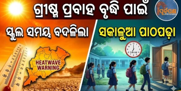 ରାଜ୍ୟ ସରକାର ବର୍ଦ୍ଧିତ ଗରମ ଏବଂ ପ୍ରଚଳିତ ଗ୍ରୀଷ୍ମ ପ୍ରବାହ ପରିସ୍ଥିତିକୁ ଦୃଷ୍ଟିରେ ରଖି ସଂଶୋଧିତ ସମୟସୂଚୀ ଲାଗୁ କରିଥିବାରୁ ଶନିବାର ଠାରୁ ସାରା ଓଡ଼ିଶାରେ ସକାଳ ସ୍କୁଲ ସମୟ କାର୍ଯ୍ୟକାରୀ ହୋଇଛି। ସ୍କୁଲ ଏବଂ ଗଣଶିକ୍ଷା ବିଭାଗ ଦ୍ୱାରା ଜାରି ନିର୍ଦ୍ଦେଶନାମା ଅନୁଯାୟୀ, ସ୍କୁଲଗୁଡ଼ିକ ଏବେ ସକାଳ ୬;୩୦ ରୁ ୧୦;୩୦ ପର୍ଯ୍ୟନ୍ତ କାର୍ଯ୍ୟ କରିବ। ବର୍ଦ୍ଧିତ ତାପମାତ୍ରା ମଧ୍ୟରେ ଛାତ୍ରଛାତ୍ରୀଙ୍କ ସୁରକ୍ଷା ଏବଂ ସୁସ୍ଥତା ସୁନିଶ୍ଚିତ କରିବା ପାଇଁ ପ୍ରାତଃ ସମୟସୂଚୀ ଗ୍ରୀଷ୍ମ ଛୁଟି … Continue reading ବଦଳିଲା ସ୍କୁଲ ସମୟ; ଗ୍ରୀଷ୍ମ ପ୍ରବାହ ବୃଦ୍ଧି ପାଇଁ ସକାଳୁଆ ପାଠପଢ଼ା || School timings changed; Morning classes to increase summer flow