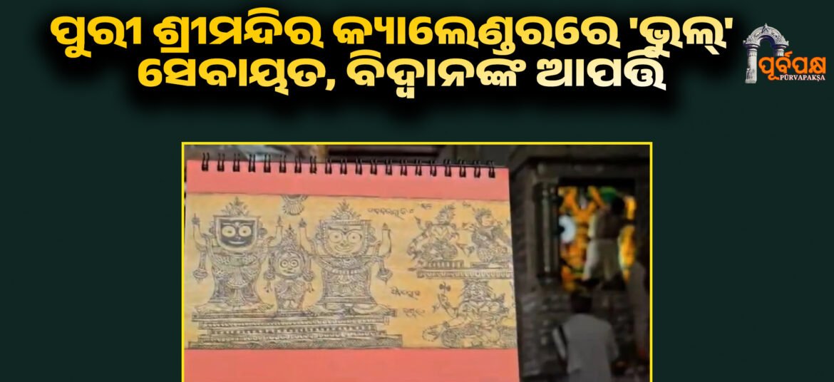 ପୁରୀରେ ଶ୍ରୀଜଗନ୍ନାଥ ମନ୍ଦିର ପ୍ରଶାସନ ଦ୍ୱାରା ଇଂରାଜୀ ନବବର୍ଷ ପାଇଁ ପ୍ରସ୍ତୁତ କ୍ୟାଲେଣ୍ଡରରେ ଏକ ତ୍ରୁଟି ଚିହ୍ନଟ ହୋଇଥିଲା, ଯାହା ମନ୍ଦିର ସେବକ ଏବଂ ବୁଦ୍ଧିଜୀବୀ ସମ୍ପ୍ରଦାୟର ସଦସ୍ୟମାନଙ୍କ ମଧ୍ୟରେ ଚିନ୍ତା ସୃଷ୍ଟି କରିଥିଲା।ବୁଧବାର ଦିନ ଏହି ପ୍ରସଙ୍ଗ ପ୍ରକାଶ ପାଇଲା ଯେ ପ୍ରଭୁ ବଳଭଦ୍ରଙ୍କ ପ୍ରତିଛବିକୁ ପ୍ରଭୁ ଜଗନ୍ନାଥଙ୍କ ସ୍ଥାନରେ ରଖାଯାଇଥିଲା, ଯେତେବେଳେ ପ୍ରଭୁ ଜଗନ୍ନାଥଙ୍କ ପ୍ରତିଛବି ପାରମ୍ପାରିକ ଭାବରେ ପ୍ରଭୁ ବଳଭଦ୍ରଙ୍କ ପାଇଁ ସଂରକ୍ଷିତ ସ୍ଥାନରେ ଦେଖାଯାଇଥିଲା। ରିପୋର୍ଟ ଅନୁସାରେ ଟେବୁଲ … Continue reading Sevayat object to ‘error’ in Puri temple calendar ।। ପୁରୀ ଶ୍ରୀମନ୍ଦିର କ୍ୟାଲେଣ୍ଡରରେ ‘ଭୁଲ୍’ ନେଇ ସେବାୟତ, ବିଦ୍ୱାନଙ୍କ ଆପତ୍ତି; SJTA ସ୍ପଷ୍ଟୀକରଣ ଜାରି କଲା