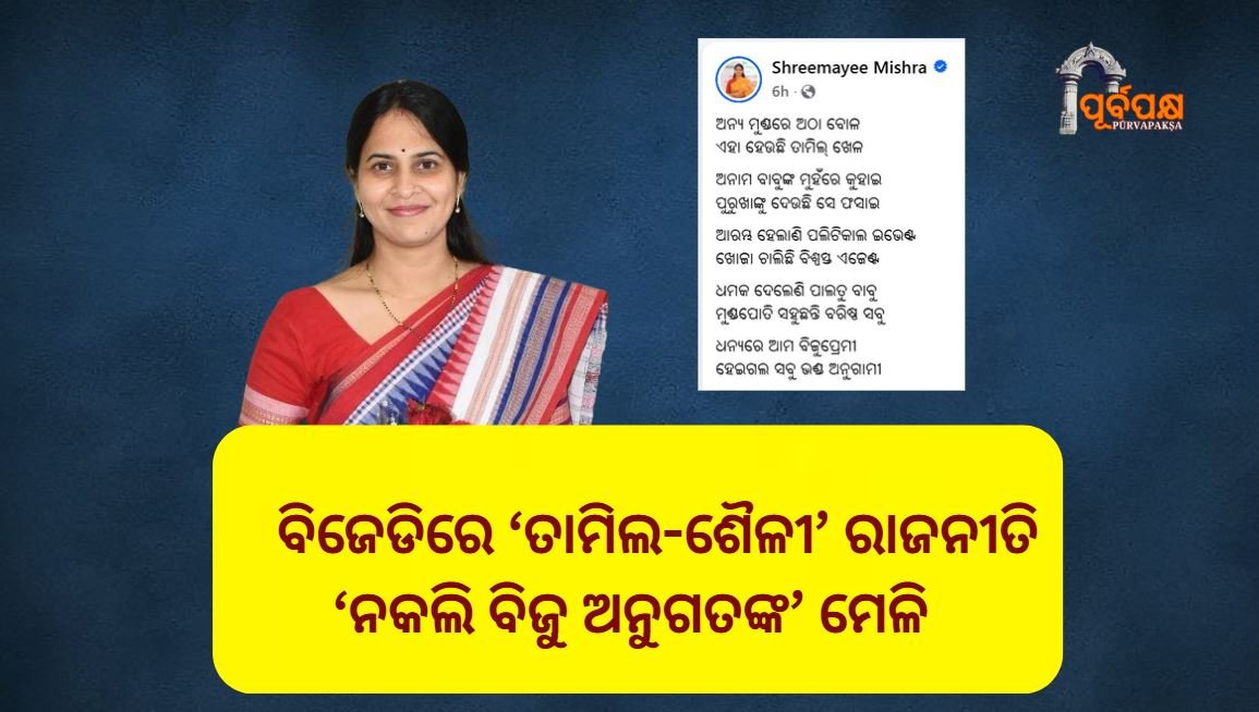 ଓଡ଼ିଶାର ରାଜନୀତି ପୂର୍ବରୁ ଅନେକ ତୁମ୍ଭିତୋଫାନ ଦେଖିଛି- କିନ୍ତୁ ବର୍ତ୍ତମାନ ବିଜେଡି ଭିତରେ ଯାହା ଚାଲୁଛି, ସେ ଏକ ନୂଆ ପରିବର୍ତ୍ତନର ଭୂମିକା , ଏକ ନିରବ ଜ୍ୱାଳା ଏବଂ ଦଳର ପରିଚୟକୁ ନେଇ ତୀକ୍ଷ୍ଣ ସଂକଟର ପରିଚୟ। ନିଲମ୍ବିତ ବିଜେଡି ନେତ୍ରୀ ଶ୍ରୀମୟୀ ମିଶ୍ର ପୁଣିଥରେ ବିଜେଡି ଉପରେ ସୋସିଆଲ ମିଡିଆ ମାଧ୍ୟମରେ ପରୋକ୍ଷ କିନ୍ତୁ ତୀବ୍ର ପ୍ରହାର କରିଛନ୍ତି। କେବଳ ସମାଲୋଚନା ନୁହେଁ- ସେ ଦଳର ଆତ୍ମାକୁ, ତାର ଇତିହାସକୁ, ବିଜୁ ପଟ୍ଟନାୟକଙ୍କ ଆଦର୍ଶକୁ ଏବଂ ବର୍ତ୍ତମାନର ନେତୃତ୍ୱ ପଦ୍ଧତିକୁ ସଂକେତମୟ କବିତାରେ ଗୋଟିଏ ଗଭୀର ଅଭିଯୋଗ–ଚିତ୍ର ଭାବେ ପ୍ରକାଶ କରିଛନ୍ତି। ସେ ପ୍ରଶ୍ନ ଉଠାଇଛନ୍ତି ତାହା ମାତ୍ର ଜଣେ ନେତାଙ୍କ ଅସନ୍ତୋଷ ନୁହେଁ—ଏହା ବିଜେଡିର ଭିତରେ ଅବସ୍ଥାପିତ ସ୍ୱଚ୍ଛତା, ନେତୃତ୍ୱ ଉତ୍ତରାଧିକାର ନିଷ୍ଠା ଓ ଅନୁଗତତାର ଜଟିଳ ସଂକଟ ଉପରେ ଏକ ସଡ଼କ ଆଇନା ରଖିଦେଇଛି।