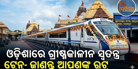 ଗ୍ରୀଷ୍ମ ଛୁଟି ଋତୁରେ ଯାତ୍ରା ଚାହିଦା ବୃଦ୍ଧିକୁ ଦୃଷ୍ଟିରେ ରଖି, ଭାରତୀୟ ରେଳବାଇ ଓଡ଼ିଶାକୁ ଦେଶର ପ୍ରମୁଖ ସହରଗୁଡ଼ିକ ସହିତ ସଂଯୋଗ କରୁଥିବା ଅନେକ ଅତିରିକ୍ତ ସ୍ୱତନ୍ତ୍ର ଟ୍ରେନ୍ ଚଳାଚଳ ଘୋଷଣା କରିଛି। ଏହି ପଦକ୍ଷେପର ଲକ୍ଷ୍ୟ ହେଉଛି ଯାତ୍ରୀ ଭିଡ଼ କମ କରିବା ଏବଂ ସୁଗମ ଯାତ୍ରା ସୁନିଶ୍ଚିତ କରିବା, ବିଶେଷକରି ଦିଲ୍ଲୀ, କୋଲକାତା, ବିଶାଖାପାଟନମ୍, ସମ୍ବଲପୁର, ପାଟନା ଏବଂ ପୁରୀ ଭଳି ପ୍ରମୁଖ ସ୍ଥାନକୁ ଏବଂ ସେଠାରୁ ଯାତାୟାତ କରୁଥିବା ଲୋକଙ୍କ ପାଇଁ। ଏହି … Continue reading ଓଡ଼ିଶାରେ ଗ୍ରୀଷ୍ମକାଳୀନ ସ୍ୱତନ୍ତ୍ର ଟ୍ରେନ୍- ଜାଣନ୍ତୁ ଆପଣଙ୍କ ରୁଟ୍ || Summer special trains in Odisha – know your route