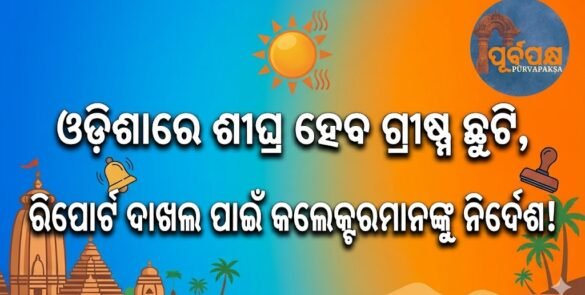 ରାଜ୍ୟରେ ବଢ଼ୁଥିବା ତାପମାତ୍ରା ମଧ୍ୟରେ ଗ୍ରୀଷ୍ମ ଛୁଟି ଘୋଷଣା ସମ୍ପର୍କରେ ଗୁରୁବାର ଦିନ ଓଡ଼ିଶା ସ୍କୁଲ ଏବଂ ଗଣଶିକ୍ଷା ମନ୍ତ୍ରୀ ନିତ୍ୟାନନ୍ଦ ଗୋଣ୍ଡ ଏକ ଗୁରୁତ୍ୱପୂର୍ଣ୍ଣ ବିବୃତ୍ତି ଜାରି କରିଛନ୍ତି। ମନ୍ତ୍ରୀ କହିଛନ୍ତି ଯେ ଜିଲ୍ଲା କଲେକ୍ଟରମାନଙ୍କ ଦ୍ୱାରା ପ୍ରଦାନ କରାଯାଇଥିବା ରିପୋର୍ଟ ଆଧାରରେ ସ୍କୁଲ ବନ୍ଦ ସମ୍ପର୍କରେ ନିଷ୍ପତ୍ତି ନିଆଯିବ। ମନ୍ତ୍ରୀଙ୍କ ଅନୁଯାୟୀ, ଅତ୍ୟଧିକ ଏବଂ ଅସହ୍ୟ ଗରମ ଅନୁଭବ କରୁଥିବା ଜିଲ୍ଲାଗୁଡ଼ିକର ବ୍ୟକ୍ତିଗତ ଭାବରେ ମୂଲ୍ୟାଙ୍କନ କରାଯିବ ଏବଂ ସେହି ଅନୁଯାୟୀ ଛୁଟି ସମ୍ପର୍କରେ … Continue reading ଓଡ଼ିଶାରେ ଶୀଘ୍ର ହେବ ଗ୍ରୀଷ୍ମ ଛୁଟି, ରିପୋର୍ଟ ଦାଖଲ ପାଇଁ କଲେକ୍ଟରମାନଙ୍କୁ ନିର୍ଦ୍ଦେଶ! || Summer vacations to begin soon in Odisha, collectors instructed to submit reports!