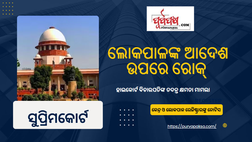 ଲୋକପାଳ ଓ ଲୋକାୟୁକ୍ତ ଆଇନ ୨୦୧୩ ଅନୁଯାୟୀ ହାଇକୋର୍ଟ ବିଚାରପତିଙ୍କ ତଦନ୍ତ କରିବାର କ୍ଷମତା ରହିଛି ବୋଲି ଲୋକପାଳଙ୍କ ଆଦେଶକୁ ସୁପ୍ରିମକୋର୍ଟ ଗୁରୁବାର ସ୍ଥଗିତ ରଖିଛନ୍ତି। ଲୋକପାଳଙ୍କ ଆଦେଶକୁ ଅତ୍ୟନ୍ତ ଚିନ୍ତାଜନକ ବୋଲି କହି ସୁପ୍ରିମକୋର୍ଟ କେନ୍ଦ୍ର ଓ ଲୋକପାଳ ରେଜିଷ୍ଟ୍ରାରଙ୍କୁ ନୋଟିସ ଜାରି କରିଛନ୍ତି।