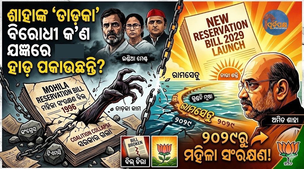 ମହିଳା ସଂରକ୍ଷଣ ବିଲ୍ ଲୋକସଭାରେ କାଟ୍ ଖାଇଛି । ଏବେ ପ୍ରଶ୍ନ ଉଠୁଛି— କିଏ ପ୍ରକୃତରେ ମହିଳାଙ୍କ ବିକାଶ ଚାହୁଁଛି ଏବଂ କିଏ କେବଳ ରାଜନୈତିକ ରୋଟି ସେକୁଛି? ଅମିତ ଶାହାଙ୍କ ଏହି ‘ତାଡ଼କା’ ବୟାନ ସହ ଆପଣ କେତେଦୂର ସହମତ?