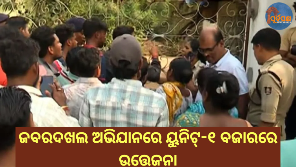 ଗୁରୁବାର ଦିନ ଭୁବନେଶ୍ୱର ମ୍ୟୁନିସିପାଲ୍ କର୍ପୋରେସନ୍ (ବିଏମସି)ର ଏକ ଦଳ ଜବରଦଖଲ ବିରୋଧୀ ଅଭିଯାନ କରିବା ପାଇଁ ପହଞ୍ଚିବା ପରେ ଭୁବନେଶ୍ୱରର ୟୁନିଟ୍-୧ ମାର୍କେଟରେ ଉତ୍ତେଜନା ଦେଖାଦେଇଥିଲା।