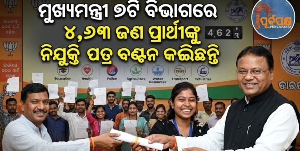 ନିଯୁକ୍ତି କ୍ଷେତ୍ରରେ ଏକ ବଡ଼ ପ୍ରୟାସ ସ୍ୱରୂପ, ଓଡ଼ିଶା ସରକାର ଗୁରୁବାର ଦିନ ଭୁବନେଶ୍ୱରର କଳିଙ୍ଗ ଷ୍ଟାଡିୟମରେ ଅନୁଷ୍ଠିତ ୧୫ତମ ରାଜ୍ୟସ୍ତରୀୟ ନିଯୁକ୍ତି ମେଳା (ନିଜୁକ୍ତି ମେଳା)ରେ ସାତଟି ବିଭାଗର ୪,୬୨୩ ଜଣ ପ୍ରାର୍ଥୀଙ୍କୁ ନିଯୁକ୍ତି ପତ୍ର ବଣ୍ଟନ କରିଛନ୍ତି। ମୁଖ୍ୟମନ୍ତ୍ରୀ ମୋହନ ଚରଣ ମାଝୀଙ୍କ ଅଧ୍ୟକ୍ଷତାରେ ଅନୁଷ୍ଠିତ ଏହି କାର୍ଯ୍ୟକ୍ରମରେ ମୁଖ୍ୟମନ୍ତ୍ରୀ ଗୁରୁତ୍ୱାରୋପ କରିଥିଲେ ଯେ ସରକାରୀ ଚାକିରି କେବଳ ଜୀବିକା ନିର୍ବାହର ଏକ ମାଧ୍ୟମ ନୁହେଁ ବରଂ ଜନସାଧାରଣଙ୍କ ସେବା କରିବାର ଏକ ଗୁରୁତ୍ୱପୂର୍ଣ୍ଣ … Continue reading ମୁଖ୍ୟମନ୍ତ୍ରୀ ୭ଟି ବିଭାଗରେ ୪,୬୨୩ ଜଣ ପ୍ରାର୍ଥୀଙ୍କୁ ନିଯୁକ୍ତି ପତ୍ର ବଣ୍ଟନ କରିଛନ୍ତି || The Chief Minister has distributed appointment letters to 4,623 candidates in 7 departments.