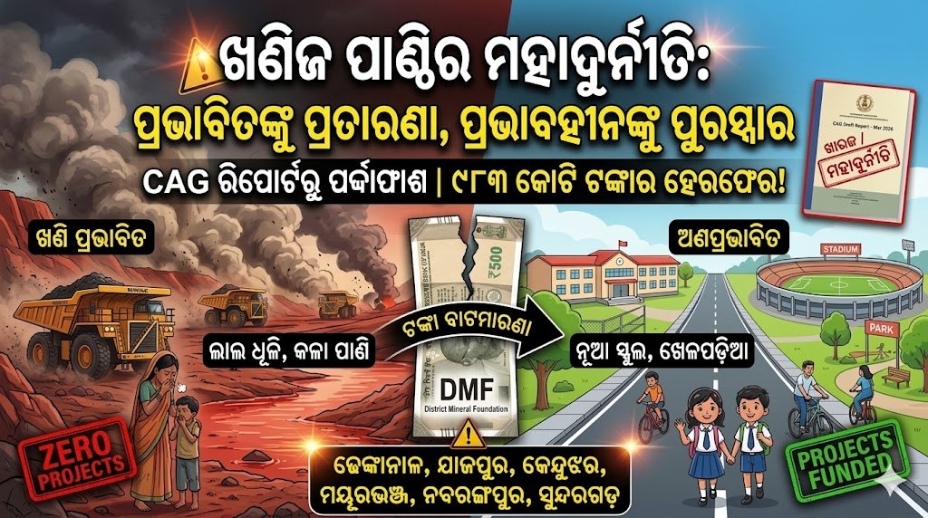 ସିଏଜି (CAG) ରିପୋର୍ଟ କଣ କହୁଛି। ବର୍ଷ ୨୦୧୫-୧୬ରୁ ଆରମ୍ଭ କରି ୨୦୨୩-୨୪ ମସିହା ପର୍ଯ୍ୟନ୍ତ… ଏହି ପାଖାପାଖି ୯ ବର୍ଷ ଭିତରେ, ଓଡ଼ିଶାର ଡିଏମଏଫ୍ ପାଣ୍ଠିରୁ ୯୮୩.୩୨ କୋଟି ଟଙ୍କା ଖର୍ଚ୍ଚ କରାଯାଇଛି। କିନ୍ତୁ ଆଶ୍ଚର୍ଯ୍ୟର କଥା ହେଉଛି, ଏତେ ବଡ଼ ପରିମାଣର ଅର୍ଥ କେଉଁଠି ଖର୍ଚ୍ଚ ହୋଇଛି ଜାଣିଛନ୍ତି? ଏହି ଟଙ୍କା ଖର୍ଚ୍ଚ ହୋଇଛି ରାଜ୍ୟର ୯୭୬ଟି ଗାଁରେ। ଆଉ ସବୁଠୁ ବଡ଼ ଦୁର୍ଭାଗ୍ୟର କଥା ହେଉଛି, ଏହି ୯୭୬ଟି ଗାଁ ଉପରେ ଖଣି ବା ମାଇନିଂର କୌଣସି ପ୍ରଭାବ ହିଁ ନାହିଁ! ସେଠାକାର ଲୋକମାନେ ଖଣି କ’ଣ ଜାଣି ନାହାନ୍ତି।
