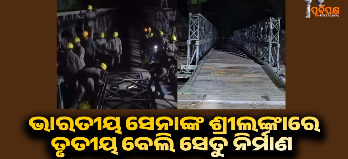 ଶ୍ରୀଲଙ୍କାରେ ଘୂର୍ଣ୍ଣିଝଡ଼ ଦିଟୱା ଯୋଗୁଁ ହୋଇଥିବା କ୍ଷୟକ୍ଷତି ପରେ, ଭାରତ ସରକାର ଅପରେସନ ସାଗର ବନ୍ଧୁ ଅଧୀନରେ ସହାୟତା ପ୍ରଦାନ କରିଆସୁଛନ୍ତି । ଭାରତୀୟ ସେନାର ଇଞ୍ଜିନିୟର ଟାସ୍କ ଫୋର୍ସ B-୪୯୨ ମରାମତି ପାଇଁ ଅକ୍ଲାନ୍ତ ପରିଶ୍ରମ କରୁଛି । ଦୁଇଟି ଗୁରୁତ୍ୱପୂର୍ଣ୍ଣ ବେଲି ସେତୁର ସଫଳ ନିର୍ମାଣ ପରେ, ଏକ ତୃତୀୟ କାର୍ଯ୍ୟ ସମାପ୍ତ ହୋଇଛି। ବର୍ତ୍ତମାନ, ଏକ ତୃତୀୟ ବେଲି ସେତୁ ସମାପ୍ତ ହୋଇଛି। ଏହି ସେତୁ ୧୨୦ ଫୁଟ ଲମ୍ବା ଏବଂ ଶ୍ରୀଲଙ୍କାର … Continue reading the Indian Army built the third Bailey bridge in Sri Lanka ।। ଭାରତୀୟ ସେନା ଅପରେସନ ସାଗର ବନ୍ଧୁ ଅଧୀନରେ ଶ୍ରୀଲଙ୍କାରେ ତୃତୀୟ ବେଲି ସେତୁ ନିର୍ମାଣ କରିଥିଲା।