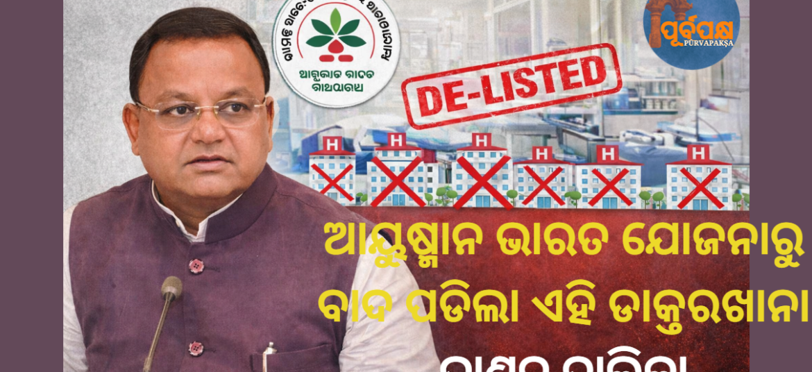 ଆୟୁଷ୍ମାନ ଭାରତ-ଗୋପବନ୍ଧୁ ଜନ ଆରୋଗ୍ୟ ଯୋଜନାର ଉଲ୍ଲଂଘନ ଏବଂ ଅନିୟମିତତା ଅଭିଯୋଗ ପରେ ଓଡ଼ିଶା ସରକାର ୧୦ଟି ଘରୋଇ ହସ୍ପିଟାଲକୁ ଆୟୁଷ୍ମାନ ଭାରତ-ଗୋପବନ୍ଧୁ ଜନ ଆରୋଗ୍ୟ ଯୋଜନାର ତାଲିକାରୁ ବାଦ୍ ଦେଇଛନ୍ତି। ଏହା ସହିତ, ଯୋଜନା ଅଧୀନରେ ନକଲି ଦାବି ଦାଖଲ କରିବା ପାଇଁ ଗଞ୍ଜାମ ଜିଲ୍ଲାର ଏକ ହସ୍ପିଟାଲକୁ ଦଣ୍ଡିତ କରାଯାଇଛି। ସୋମବାର ବିଧାନସଭାରେ ସୂଚନା ଦେଇ ସ୍ୱାସ୍ଥ୍ୟମନ୍ତ୍ରୀ ମୁକେଶ ମହାଲିଙ୍ଗ କହିଛନ୍ତି ଯେ ବିଭିନ୍ନ ସ୍ୱାସ୍ଥ୍ୟସେବା ପ୍ରତିଷ୍ଠାନ ବିରୁଦ୍ଧରେ ଦାଖଲ ହୋଇଥିବା ୫୬ଟି ଅଭିଯୋଗ … Continue reading ଆୟୁଷ୍ମାନ ଭାରତ ଯୋଜନାରୁ ବାଦ ପଡିଲା ଏହି ଡାକ୍ତରଖାନା; ଜାଣନ୍ତୁ ତାଲିକା || This hospital was excluded from Ayushman Bharat scheme; know the list