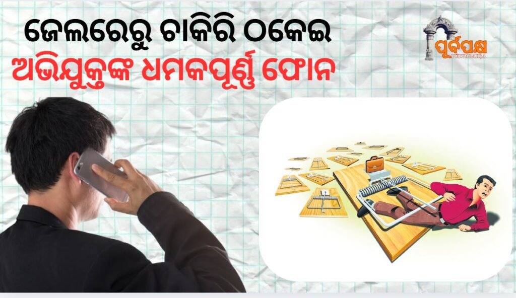 ଜେଲରେ ବନ୍ଦୀ ଥିବା ଜଣେ ଚାକିରି ଠକେଇ ଅଭିଯୁକ୍ତ ତାଙ୍କ ପୀଡ଼ିତାଙ୍କ ପରିବାର ସଦସ୍ୟଙ୍କୁ ଧମକପୂର୍ଣ୍ଣ ଫୋନ୍ କରି ତାଙ୍କ ବିରୁଦ୍ଧରେ ମାମଲା ପ୍ରତ୍ୟାହାର କରିବାକୁ ଚେତାବନୀ ଦେବା ପରେ କୁଜଙ୍ଗ ସବ-ଜେଲର କର୍ତ୍ତୃପକ୍ଷଙ୍କ ଉପରେ ନଜର ରଖାଯାଇଛି। ବିଚାରାଧୀନ କଏଦୀ (ୟୁଟିପି), ୪୦ ବର୍ଷୀୟ ନିରାକାର ସ୍ୱାଇଁ ଅକ୍ଟୋବର ୭ ତାରିଖରେ ଏରାସମାର ରାମ ଚନ୍ଦ୍ର ସାହୁଙ୍କୁ ଫୋନ୍ କରି ତାଙ୍କ ପୁଅ ଉମା ଶଙ୍କର ସାହୁ (୨୫) ଦ୍ୱାରା ଦାୟର ଅଭିଯୋଗ ପ୍ରତ୍ୟାହାର କରିବାକୁ ଧମକ ଦେଇଥିଲେ।