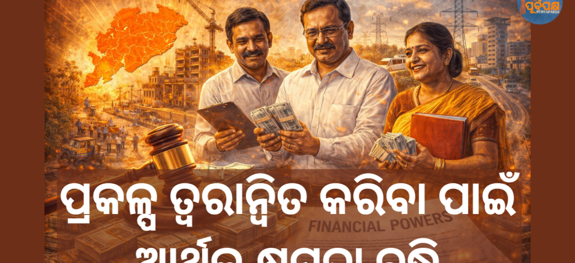 ଏକ ଗୁରୁତ୍ୱପୂର୍ଣ୍ଣ ପ୍ରଶାସନିକ ସଂସ୍କାରରେ, ଓଡ଼ିଶା ସରକାର ବିଭିନ୍ନ ପ୍ରକଳ୍ପ ଏବଂ ଯୋଜନାର କାର୍ଯ୍ୟାନ୍ୱୟନରେ ଅଧିକ ସ୍ୱଚ୍ଛତା ଏବଂ ଗତି ଆଣିବା ଲକ୍ଷ୍ୟରେ, ଡେଲିଗେସନ୍ ଅଫ୍ ଫାଇନାନ୍ସିଆଲ୍ ପାୱାର୍ସ ରୁଲ୍ସ (DFPR), ୧୯୭୮ ସଂଶୋଧନ କରି ଅଧିକାରୀଙ୍କ ଆର୍ଥିକ କ୍ଷମତା ବୃଦ୍ଧି କରିଛନ୍ତି। ଅର୍ଥ ବିଭାଗ ଦ୍ୱାରା ଜାରି ସଂଶୋଧିତ ନିର୍ଦ୍ଦେଶାବଳୀ ଅନୁଯାୟୀ, ପୂର୍ବରୁ କ୍ୟାବିନେଟ୍ କିମ୍ବା ମନ୍ତ୍ରୀଙ୍କଠାରୁ ମଞ୍ଜୁରୀ ଆବଶ୍ୟକ କରୁଥିବା ଅନେକ ଅନୁମୋଦନ ଏବେ ବିଭାଗୀୟ ସ୍ତରରେ ପ୍ରଦାନ କରାଯାଇପାରିବ। ଏହା ବିଳମ୍ବ ହ୍ରାସ … Continue reading ପ୍ରକଳ୍ପ ତ୍ୱରାନ୍ୱିତ କରିବା ପାଇଁ, ଆର୍ଥିକ କ୍ଷମତା ବୃଦ୍ଧି || To accelerate the project, increase financial capacity