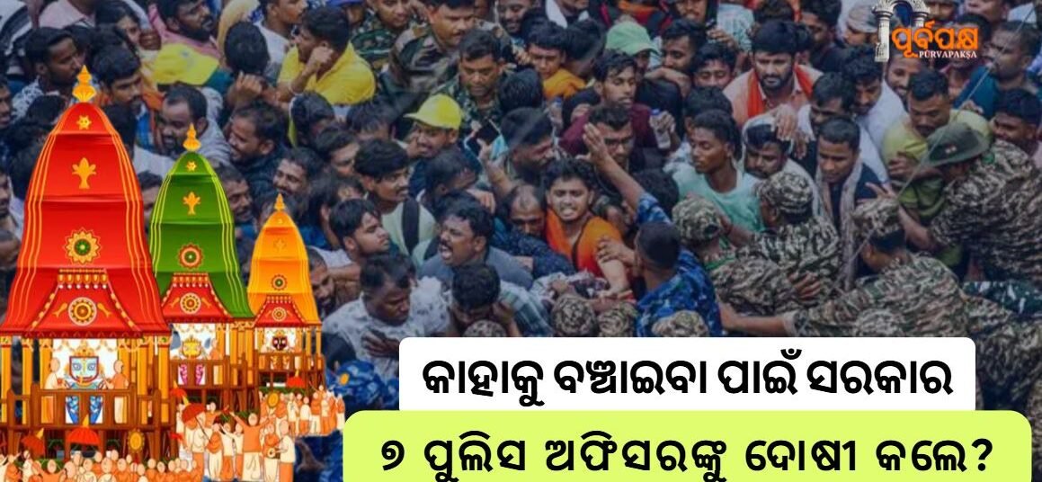 ରଥଯାତ୍ରା ସମୟରେ ରଥ ଆଗରେ ଘଟିଥିବା ଦଳାଚକଟା ଘଟଣାରେ ୭ ଜଣ ପୁଲିସ ଅଫିସରଙ୍କ ଉପରେ ଶୃଙ୍ଖଳାଗତ କାର୍ଯ୍ୟାନୁଷ୍ଠାନ ଗ୍ରହଣ କରିବାକୁ ରାଜ୍ୟ ସରକାର ପୁଲିସ ଡିଜିଙ୍କୁ ସୁପାରିସ କରିବା ପରେ ହଇଚଇ ହୋଇଛି। ଯେଉଁ ଆଇପିଏସ୍ ଅଫିସରମାନେ ଦାୟିତ୍ଵରେ ଥିଲେ ସେମାନଙ୍କ ଉପରେ କାର୍ଯ୍ୟାନୁଷ୍ଠାନ ହୋଇ ନଥିବାରୁ ଏହା ଏକ ସୁପରିକଳ୍ପିତ ଷଡ଼ଯନ୍ତ୍ର ବୋଲି ଅଭିଯୋଗ ହୋଇଛି। ଉନ୍ନୟନ କମିସନର ତାଙ୍କ ରିପୋର୍ଟରେ ଦର୍ଶାଇଛନ୍ତି ଯେ, ତତ୍କାଳୀନ ପୁରୀ ଏସ୍ପି ଯିଏ କି ସମସ୍ତ ଦାୟିତ୍ଵରେ … Continue reading To save whom did the government convict 7 police officers? ।। କାହାକୁ ବଞ୍ଚାଇବା ପାଇଁ ସରକାର ୭ ପୁଲିସ ଅଫିସରଙ୍କୁ ଦୋଷୀ କଲେ?