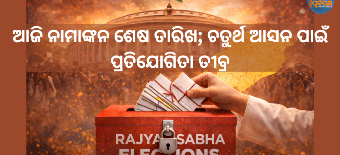 ଗୁରୁବାର ରାଜ୍ୟସଭା ନିର୍ବାଚନ ପାଇଁ ନାମାଙ୍କନ ଦାଖଲର ଶେଷ ତାରିଖ ଶେଷ ହେବା ସହିତ, ଓଡ଼ିଶାର ପାଞ୍ଚ ଜଣ ପ୍ରାର୍ଥୀ ଦିନ ପରେ ସେମାନଙ୍କର ପତ୍ର ଦାଖଲ କରିବାକୁ ଯାଉଛନ୍ତି। ଓଡ଼ିଶାର ଖାଲି ପଡ଼ିଥିବା ଚାରୋଟି ଆସନ ମଧ୍ୟରୁ, ପ୍ରଥମ ଦୁଇଟିରେ ସିଧାସଳଖ ଫଳାଫଳ ମିଳିବ ବୋଲି ଆଶା କରାଯାଉଛି, ଯେତେବେଳେ ତୃତୀୟ ଏବଂ ଚତୁର୍ଥ ଆସନ ଗୁରୁତ୍ୱପୂର୍ଣ୍ଣ ରାଜନୈତିକ ଦୃଷ୍ଟି ଆକର୍ଷଣ କରିଛି। ପ୍ରଥମ ଦୁଇଟି ଆସନ ପାଇଁ, ବିଜେପି ମନମୋହନ ସାମଲ ଏବଂ ସୁଜିତ … Continue reading ଆଜି ନାମାଙ୍କନ ଶେଷ ତାରିଖ; ଚତୁର୍ଥ ଆସନ ପାଇଁ ପ୍ରତିଯୋଗିତା ତୀବ୍ର || Today is the last day for nominations; competition is fierce for the fourth seat