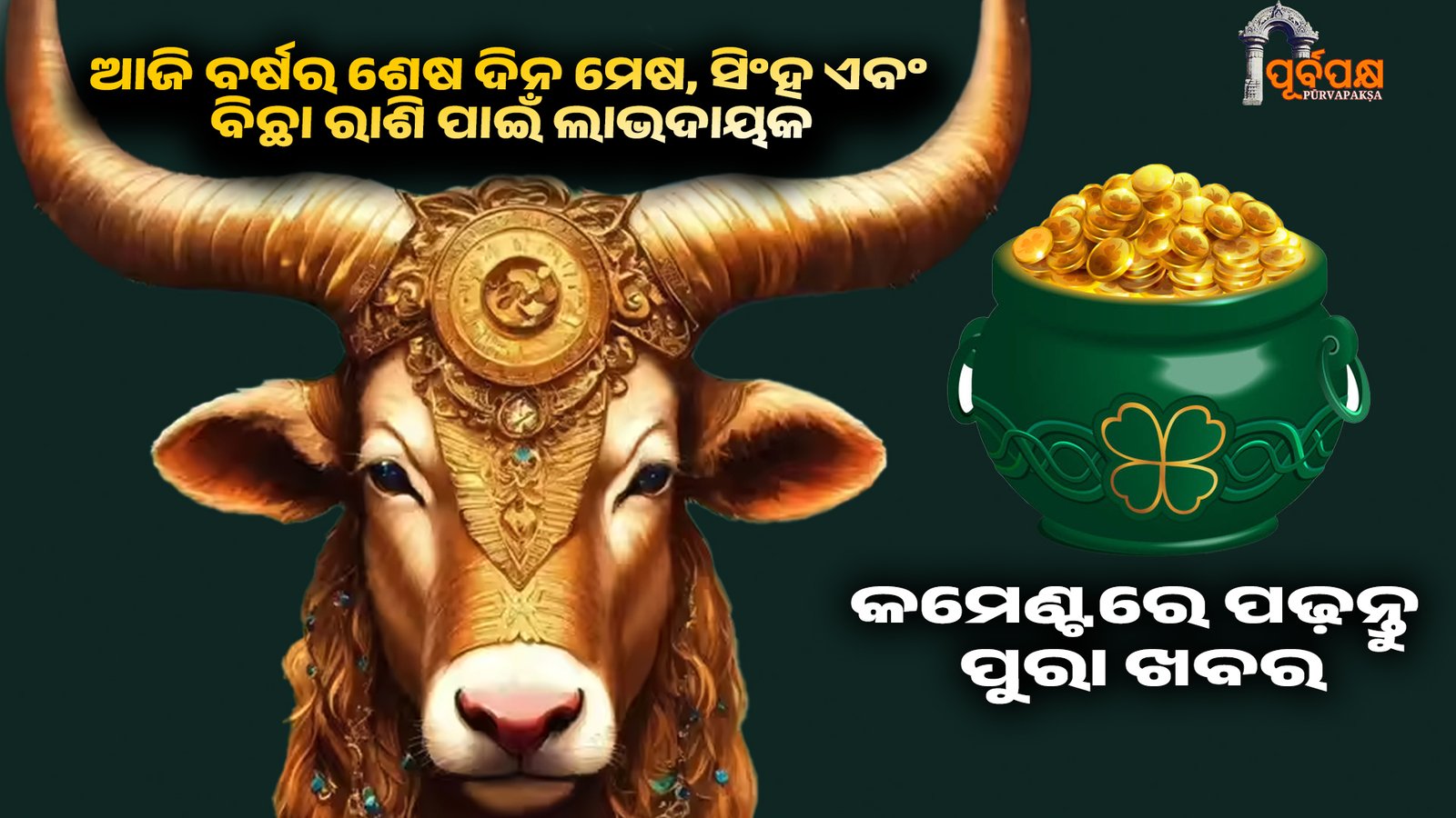 ଜ୍ୟୋତିଷ ଗଣନା ଅନୁସାରେ ଡିସେମ୍ବର ୩୧ ତାରିଖର ରାଶିଫଳ ମେଷ, ସିଂହ ଏବଂ ବିଛା ରାଶି ପାଇଁ ଶୁଭ ଏବଂ ଲାଭଦାୟକ ହେବ। ଚନ୍ଦ୍ରଠାରୁ ଦ୍ୱିତୀୟ ଘରେ ବୃହସ୍ପତିଙ୍କ ସ୍ଥାନ ଯୋଗୁଁ ଦିନ ଏବଂ ରାତି ମଧ୍ୟରେ ବୃଷ ରାଶି ଦେଇ ଚନ୍ଦ୍ରର ଗମନ ଏକ ଶୁଭ ସଂଯୋଗ ସୃଷ୍ଟି କରିବ, ଯେତେବେଳେ ଚନ୍ଦ୍ରରୁ ଅଷ୍ଟମ ଘରେ ଚାରୋଟି ଗ୍ରହର ସଂଯୋଗ ଏକ ସକାରାତ୍ମକ ମିଶ୍ରଣ ସୃଷ୍ଟି କରିବ। ସମସ୍ତ ରାଶି ପାଇଁ ବର୍ଷର ଶେଷ ଦିନ କିପରି ରହିବ ତାହା ଜାଣିବା ପାଇଁ ଆଜିର ରାଶିଫଳ ଦେଖନ୍ତୁ।