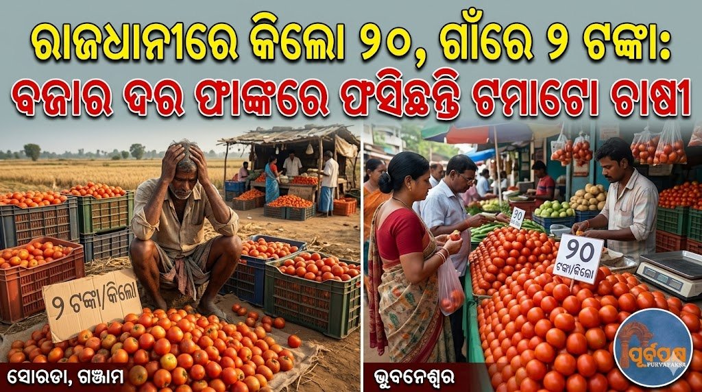 ଭଲ ଫସଲ ବି ଚାଷୀଙ୍କ ପାଇଁ ପାଲଟିଛି ସଙ୍କଟ । ସହରାଞ୍ଚଳ ଏବଂ ଗ୍ରାମାଞ୍ଚଳ ବଜାର ମଧ୍ୟରେ ବିପରୀତ ଭାବେ ଦେଖିବାକୁ ମିଳିଛି ଏକ ଆଶ୍ଚର୍ଯ୍ୟଜନକ ତଫାତ । ଓଡ଼ିଶାରେ ଦୁଇଟି ଭିର୍ଣ୍ଣ ସ୍ଥାନରେ ଟମାଟୋ ମୂଲ୍ୟରେ ଏକ ନାଟକୀୟ ପାର୍ଥକ୍ୟ ଦେଖାଦେଇଛି, ଯାହା ଚାଷୀମାନଙ୍କୁ ସଙ୍କଟରେ ପକାଇଛି। ଭୁବନେଶ୍ୱରରେ ଟମାଟୋ ପ୍ରାୟ ୨୦ ଟଙ୍କା ପ୍ରତି କିଲୋଗ୍ରାମରେ ବିକ୍ରି ହେଉଥିବା ବେଳେ, ଗ୍ରାମାଞ୍ଚଳର ଚାଷୀମାନେ ସେମାନଙ୍କ ଉତ୍ପାଦିତ ସାମଗ୍ରୀକୁ କିଲୋଗ୍ରାମ ପ୍ରତି ୨ ଟଙ୍କା ପର୍ଯ୍ୟନ୍ତ କମ ମୂଲ୍ୟରେ ବିକ୍ରୟ କରିବାକୁ କିମ୍ବା ମାଗଣାରେ ବଣ୍ଟନ କରିବାକୁ ବାଧ୍ୟ ହେଉଛନ୍ତି।