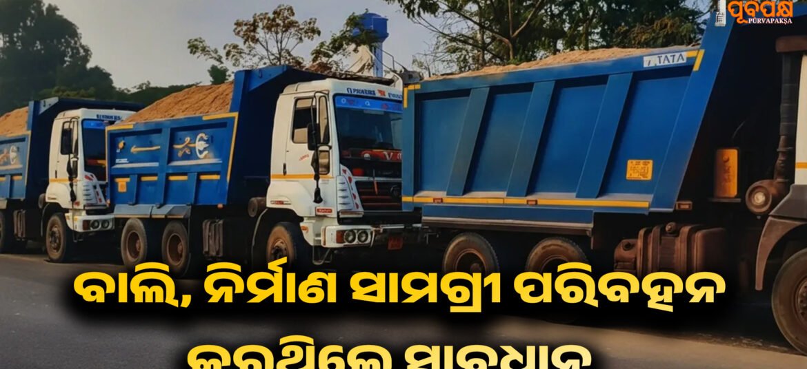 ରାଜ୍ୟ ପରିବହନ ପ୍ରାଧିକରଣ ଓଡ଼ିଶା, ବାଲି ଏବଂ ଖୋଲା ନିର୍ମାଣ ସାମଗ୍ରୀ ପରିବହନ ଉପରେ ଯାଞ୍ଚକୁ ଆହୁରି କଡ଼ାକଡ଼ି କରିବା ପାଇଁ ସମସ୍ତ ପରିବହନ ପ୍ରବର୍ତ୍ତନ ଅଧିକାରୀଙ୍କୁ ନିର୍ଦ୍ଦେଶ ଜାରି କରିଛି । ନିର୍ଦ୍ଦେଶ ଅନୁଯାୟୀ ଓଭରଲୋଡିଂ କିମ୍ବା ଉପଯୁକ୍ତ ଆବରଣ ବିନା ଏପରି ସାମଗ୍ରୀ ପରିବହନକୁ ଅନୁମତି ଦିଆଯିବ ନାହିଁ । ନିୟମ ପାଳନ ସୁନିଶ୍ଚିତ କରିବା ପାଇଁ STA ଅଧିକାରୀମାନଙ୍କୁ ଲୋଡିଂ ପଏଣ୍ଟଗୁଡ଼ିକରେ ଯାଞ୍ଚ କରିବାକୁ ନିର୍ଦ୍ଦିଷ୍ଟ ଭାବରେ ନିର୍ଦ୍ଦେଶ ଦେଇଛି । ନିୟମ … Continue reading Transportation of sand : Odisha tightens enforcement ।। ବାଲି, ନିର୍ମାଣ ସାମଗ୍ରୀ ପରିବହନ: ଓଡ଼ିଶା କଡ଼ାକଡ଼ି କରିଛି କାର୍ଯ୍ୟାନୁଷ୍ଠାନ