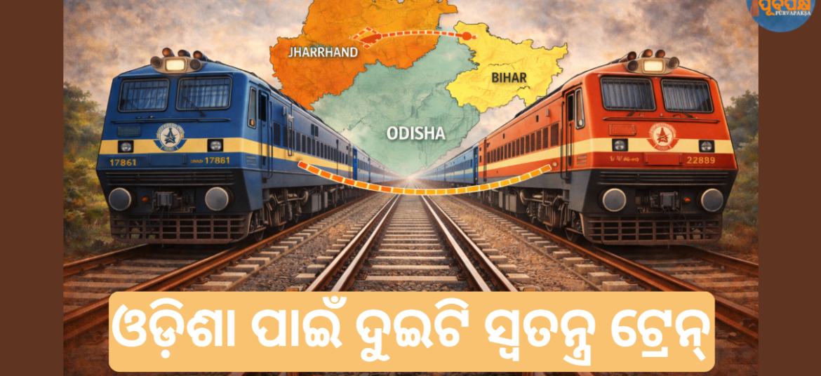 ଭାରତୀୟ ରେଳବାଇ ଝାଡ଼ଖଣ୍ଡ ଏବଂ ବିହାର ସହିତ ଓଡ଼ିଶାକୁ ସଂଯୋଗ କରୁଥିବା ଦୁଇଟି ସ୍ୱତନ୍ତ୍ର ଟ୍ରେନ୍ ନିୟମିତ କରିବାକୁ ଅନୁମୋଦନ କରିଛି, ଯାହା ଆଞ୍ଚଳିକ ରେଳ ସଂଯୋଗକୁ ସୁଦୃଢ଼ କରିବ ଏବଂ ଯାତ୍ରୀଙ୍କ ସୁବିଧାକୁ ଉନ୍ନତ କରିବ ବୋଲି ଆଶା କରାଯାଉଛି। କେନ୍ଦ୍ର ରେଳମନ୍ତ୍ରୀ ଅଶ୍ୱିନୀ ବୈଷ୍ଣବ ଏକ ଚିଠି ମାଧ୍ୟମରେ ଓଡ଼ିଶା ମୁଖ୍ୟମନ୍ତ୍ରୀ ମୋହନ ଚରଣ ମାଝୀଙ୍କୁ ଏହି ନିଷ୍ପତ୍ତି ଜଣାଇଥିଲେ। ଭୁବନେଶ୍ୱର-ଧାନବାଦ ସ୍ୱତନ୍ତ୍ର (୦୨୮୩୨/୦୨୮୩୧) ଏବେ ଭୁବନେଶ୍ୱର-ଧାନବାଦ ଏକ୍ସପ୍ରେସ (୧୮୪୦୩/୧୮୪୦୪) ଭାବରେ ପରିଚାଳିତ ହେବ, … Continue reading ଓଡ଼ିଶା ପାଇଁ ଦୁଇଟି ସ୍ୱତନ୍ତ୍ର ଟ୍ରେନ୍ || Two special trains for Odisha