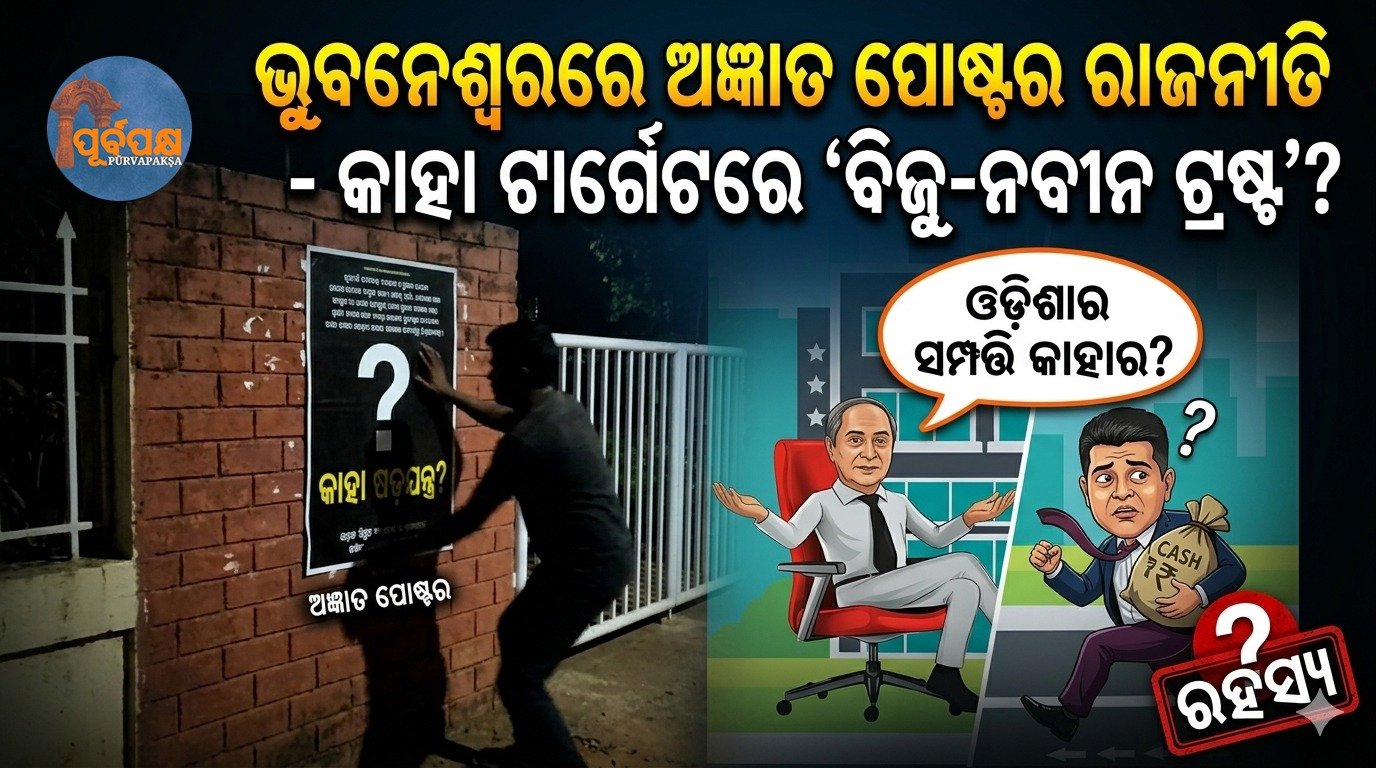 ରାଜଧାନୀ ଭୁବନେଶ୍ୱରର ରାଜରାସ୍ତା ଏବେ ଏକ ନୂଆ ରାଜନୈତିକ ଯୁଦ୍ଧର ମୈଦାନ ପାଲଟିଛି। କୌଣସି ଭାଷଣ ନୁହେଁ କି କୌଣସି ଶୋଭାଯାତ୍ରା ନୁହେଁ, ବରଂ କିଛି ‘ଅଜ୍ଞାତ ପୋଷ୍ଟର’ ଏବେ ଓଡ଼ିଶା ରାଜନୀତିରେ ହଇଚଇ ସୃଷ୍ଟି କରିଛି। ରାତାରାତି ରାଜଧାନୀର ବିଭିନ୍ନ ପ୍ରମୁଖ ସ୍ଥାନରେ ଲାଗିଥିବା ଏହି ପୋଷ୍ଟରଗୁଡ଼ିକ ଏବେ ସିଧାସଳଖ ଆଙ୍ଗୁଠି ନିର୍ଦ୍ଦେଶ କରୁଛନ୍ତି ‘ବିଜୁ-ନବୀନ ଟ୍ରଷ୍ଟ’ ଆଡ଼କୁ। ପ୍ରଶ୍ନ ଉଠୁଛି, ଏହି ପୋଷ୍ଟର ପଛରେ କିଏ? ଏହା କ’ଣ କୌଣସି ବଡ଼ ସଙ୍କେତ?”
