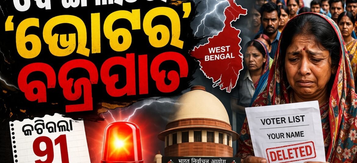 ପଶ୍ଚିମବଙ୍ଗର ଉତ୍ତର ୨୪ ପ୍ରଗଣା ଜିଲ୍ଲାର ଜଣେ ସାଧାରଣ ଗୃହିଣୀ ନଦିଆ ମଣ୍ଡଳ। ଦୀର୍ଘ ୨୭ ବର୍ଷ ତଳେ ବାହା ହୋଇ ସେ ଦୁତ୍ତାପୁକୁରକୁ ଆସିଥିଲେ। ପାଖରେ ଆଧାର କାର୍ଡ ଅଛି, ପରିଚୟ ପତ୍ର ଅଛି ଏବଂ ଜଣେ ଭାରତୀୟ ନାଗରିକ ଭାବେ ଗର୍ବ ମଧ୍ୟ ଅଛି। କିନ୍ତୁ ୨୦୨୬ ବିଧାନସଭା ନିର୍ବାଚନର ଠିକ୍ କିଛି ଦିନ ପୂର୍ବରୁ ତାଙ୍କ ପାଦତଳୁ ମାଟି ଖସିଯାଇଛି। କାରଣ ହେଉଛି—ଭୋଟର ତାଲିକାରୁ ତାଙ୍କ ନାଁ କଟିଯାଇଛି। ନଦିଆଙ୍କ ଭଳି ପଶ୍ଚିମବଙ୍ଗର … Continue reading ବେଙ୍ଗଲରେ ‘ଭୋଟର’ ବଜ୍ରପାତ: ଏସ୍ଆଇଆର ପରେ ତାଲିକାରୁ ଉଡ଼ିଲା ୯୧ ଲକ୍ଷ ନାଁ, ଗଣତନ୍ତ୍ରର ମହାକୁମ୍ଭ ପୂର୍ବରୁ ସାଂଘାତିକ ସ୍ଥିତି! || ‘Voter’ storm in Bengal: 91 lakh names removed from list after SIR, critical situation before the grand event of democracy!
