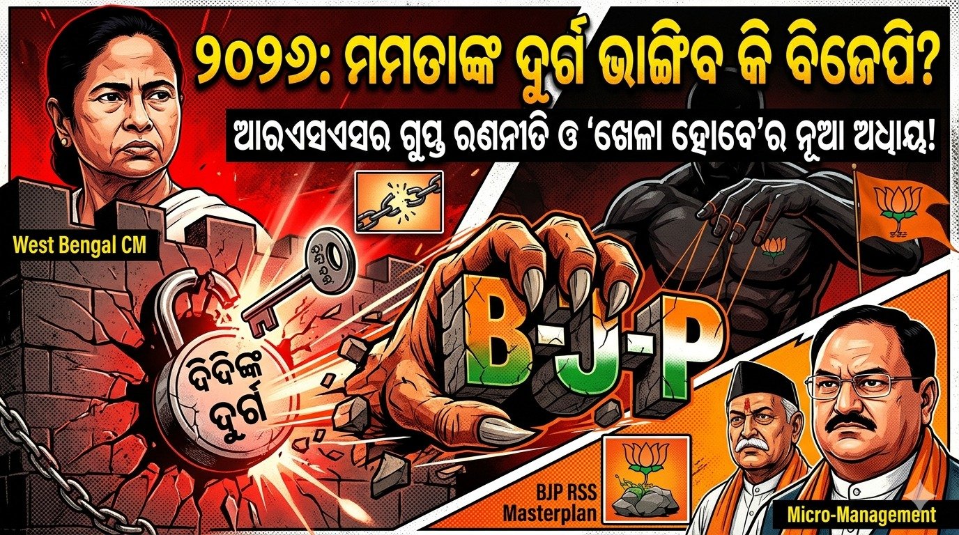 ପଶ୍ଚିମବଙ୍ଗର ସିଆସତରେ ଭିତରେ ଭିତରେ କ’ଣ ଚାଲିଛି? କ’ଣ ଏଥର ବିଜେପି ଦିଦିଙ୍କ କିଲ୍ଲା ଭେଦ କରିବାରେ ସଫଳ ହେବ? କିଛି ରିପୋର୍ଟ କହୁଛି ଯେ ଏଥର ବିଜେପି ବଙ୍ଗଳାରେ ବଡ଼ ଧରଣର ବିଜୟ ହାସଲ କରିପାରେ । କିନ୍ତୁ ଏଥିରେ କେତେ ସତ୍ୟତା ଅଛି? କ’ଣ ଆରଏସଏସର ମାଇକ୍ରୋ ମ୍ୟାନେଜମେଣ୍ଟ ମମତାଙ୍କ ‘ଖେଳା’କୁ ଓଲଟାଇ ଦେବ? ଆଜିର ଏହି ସ୍ୱତନ୍ତ୍ର ରିପୋର୍ଟରେ ଆମେ ବିଜେପିର ସେହି ମାଷ୍ଟରପ୍ଲାନ୍ ବିଷୟରେ ଜାଣିବା, ଯାହା ୨୦୨୬ ନିର୍ବାଚନରେ ସବୁଠାରୁ ବଡ଼ ‘ଗେମ୍ ଚେଞ୍ଜର’ ହୋଇପାରେ ।