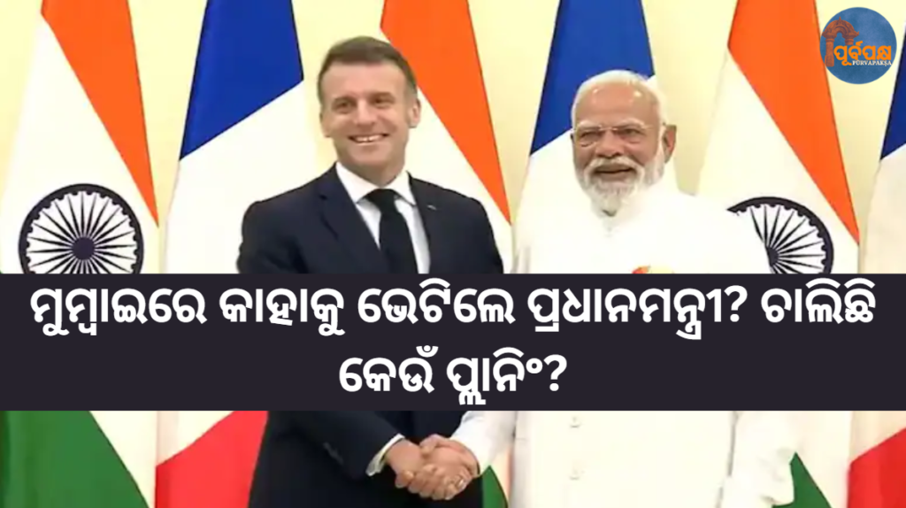 ପ୍ରଧାନମନ୍ତ୍ରୀ ନରେନ୍ଦ୍ର ମୋଦି ମୁମ୍ବାଇରେ ଫ୍ରାନ୍ସ ରାଷ୍ଟ୍ରପତି ଇମାନୁଏଲ ମାକ୍ରୋନଙ୍କୁ ଭେଟିଛନ୍ତି। ପ୍ରଧାନମନ୍ତ୍ରୀ ମୋଦି ଏବଂ ମାକ୍ରୋନଙ୍କ ମଧ୍ୟରେ ହୋଇଥିବା ସାକ୍ଷାତର ଫଟୋ ସାମ୍ନାକୁ ଆସିଛି, ଯେଉଁଥିରେ ଦୁଇ ନେତା ଉଷ୍ମତାର ସହ ହାତ ମିଳାଇ ଫଟୋସୁଟ୍ ପାଇଁ ପୋଜ୍ ଦେଉଛନ୍ତି। ସନ୍ଧ୍ୟାରେ ଦୁଇ ନେତା ଭାରତ-ଫ୍ରାନ୍ସ ନବସୃଜନ ବର୍ଷ ୨୦୨୬ ଉଦଘାଟନ କରିବେ। ମୋଦି ଏବଂ ମାକ୍ରୋନ ଶିଳ୍ପପତି, ଷ୍ଟାର୍ଟଅପ୍ ପ୍ରତିଷ୍ଠାତା, ଗବେଷଣା ବିଶେଷଜ୍ଞ ଏବଂ ନବସୃଜନ ନେତାମାନଙ୍କୁ ସମ୍ବୋଧିତ କରିବେ। ତାଙ୍କ ଗସ୍ତ ସମୟରେ, ମାକ୍ରୋନ ଦିଲ୍ଲୀରେ ଏଆଇ ପ୍ରଭାବ ସମ୍ମିଳନୀରେ ମଧ୍ୟ ଅଂଶଗ୍ରହଣ କରିବେ। ମୁମ୍ବାଇରେ ପହଞ୍ଚିବା ପରେ, ଫ୍ରାନ୍ସ ରାଷ୍ଟ୍ରପତିଙ୍କୁ ମୁମ୍ବାଇ ବିମାନବନ୍ଦରରେ ମହାରାଷ୍ଟ୍ର ମୁଖ୍ୟମନ୍ତ୍ରୀ ଦେବେନ୍ଦ୍ର ଫଡନଭିସ୍ ଏବଂ ରାଜ୍ୟପାଳ ଆଚାର୍ଯ୍ୟ ଦେବବ୍ରତ ସ୍ୱାଗତ କରିଥିଲେ।
